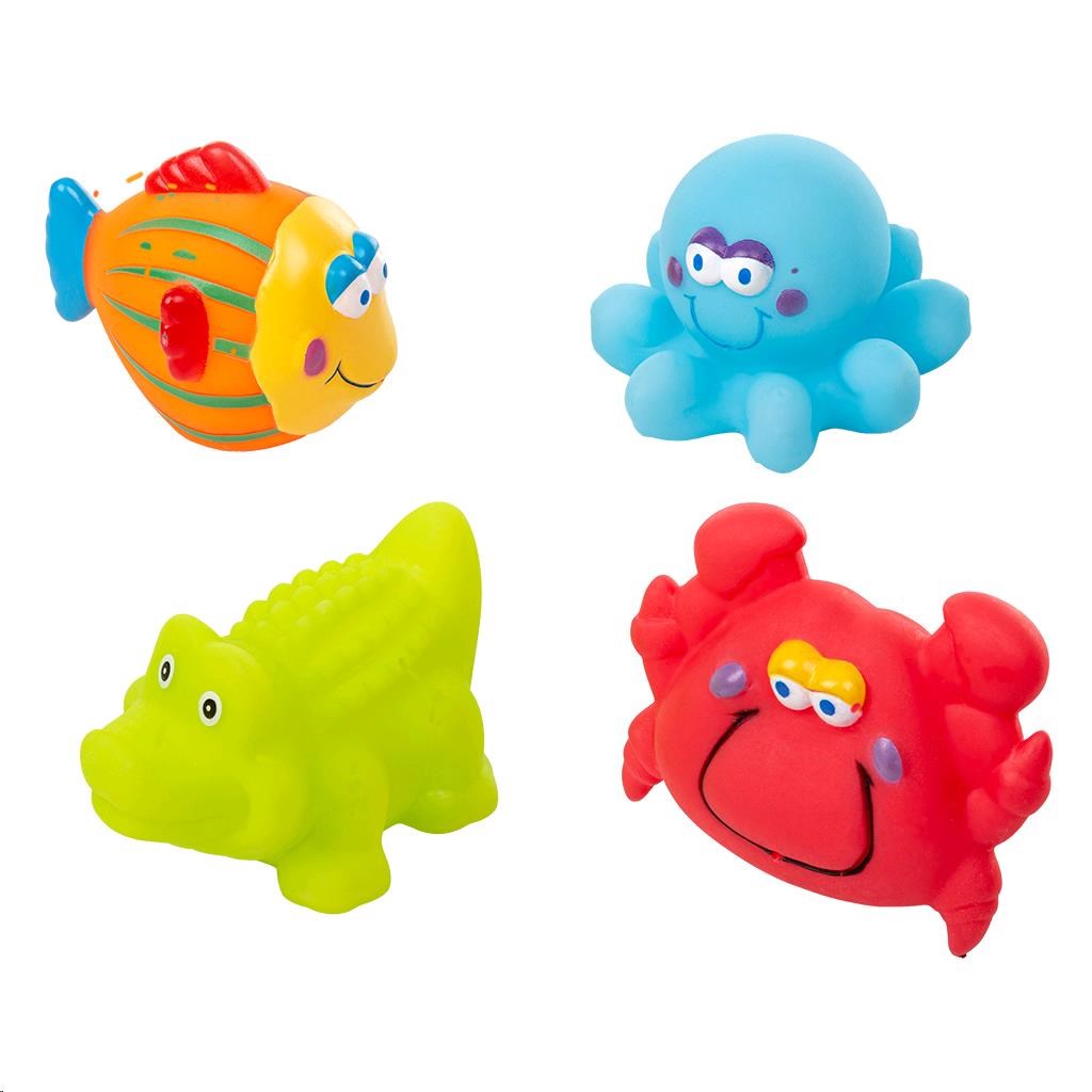 Barevné hračky do koupele Akuku. Sada 4 roztomilých barevných hraček - rybička, želvička, krab, chobotnice. Ideální na hraní ve vaně. Veselé barvy přitahnou pozornost našich nejmenších. Každá hračka má otvor, kterým můžete stříkat vodu. Zaoblené tvary zaručují bezpečnost během hry. Vyrobeny z bezpečných, vysoce kvalitních materiálů, neobsahují bisfenol A. Výška hraček 4 až 6 cm.