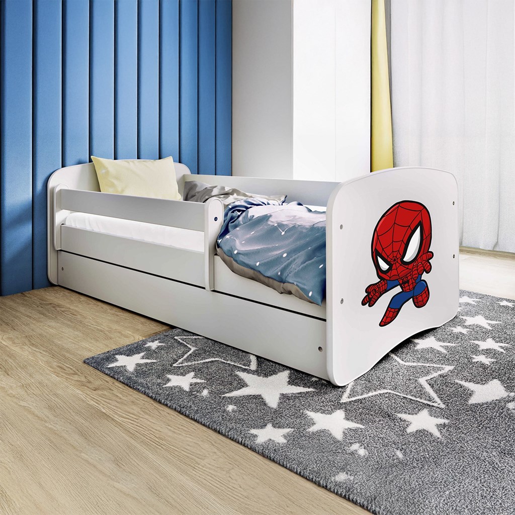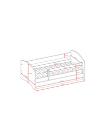 Jednolůžková postel se zábranou je vyrobena z kvalitní nábytkové desky o tloušťce 18 mm. Je dostupná v několika velikostech a barevných variantách. Pohádkové motivy zajišťují široký výběr a možnost personalizace.