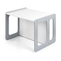Sada nábytku 3v1 Stella v barevné kombinaci bílé a šedé se šedými doplňky, navržená s ohledem na zajištění dětem: pohodlí, prostoru pro kreativní hraní, malování, psaní a maximálního komfortu během činností.