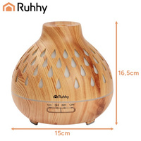 Aromatický difuzér Puri Ruhhy je kombinací zvlhčovače vzduchu a zařízení pro aromaterapii, které během několika okamžiků vytvoří v domácnosti atmosféru relaxace. Díky ultrazvukové technologii vytváří jemnou, chladivou mlhu nasycenou éterickými oleji a prostorná nádržka o objemu 400 ml zajišťuje až 10 hodin provozu. Tichý provoz <36 dB, funkce automatického vypnutí, barevné LED podsvícení a časovač z něj dělají ideální doplněk do ložnice, obývacího pokoje, kanceláře nebo SPA salonu. Zařízení v barvě světlého dřeva se skvěle hodí do moderních interiérů.