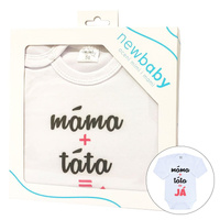 Originální bavlněné kojenecké body s dlouhým rukávem New Baby, s vtipným nápisem máma+táta=JÁ. Barvy použité k potisku jsou certifikované a vhodné pro miminka. Je vyrobeno z příjemného a kvalitního materiálu, ve kterém se bude Vaše miminko cítit příjemně. Body má zapínáni na cvočky na ramínku a mezi nožičkami, což usnadňuje oblékání a přebalování. Dopřejte Vašemu miminku vyniknout v originálním body. Složení: 100% bavlna. Rozměry: obvod kolem hrudníku cca 34 cm, délka rukávu cca 16 cm, celková délka cca 30 cm.