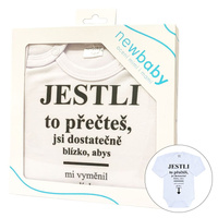Originální bavlněné kojenecké body s dlouhým rukávem New Baby, s vtipným nápisem JESTLI to přečteš, jsi dostatečne blízko, abys mi vyměnil plínku. Barvy použité k potisku jsou certifikované a vhodné pro miminka. Je vyrobeno z příjemného a kvalitního materiálu, ve kterém se bude Vaše miminko cítit příjemně. Body má zapínáni na cvočky na ramínku a mezi nožičkami, což usnadňuje oblékání a přebalování. Dopřejte Vašemu miminku vyniknout v originálním body. Složení: 100% bavlna. Rozměry: obvod kolem hrudníku cca 34 cm, délka rukávu cca 16 cm, celková délka cca 30 cm.
