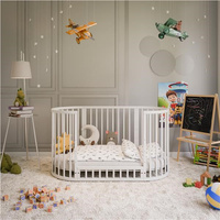 Postýlka může sloužit i jako ohrádka. Absence rohů pomáhá dítěti naučit se vstávat a lézt.