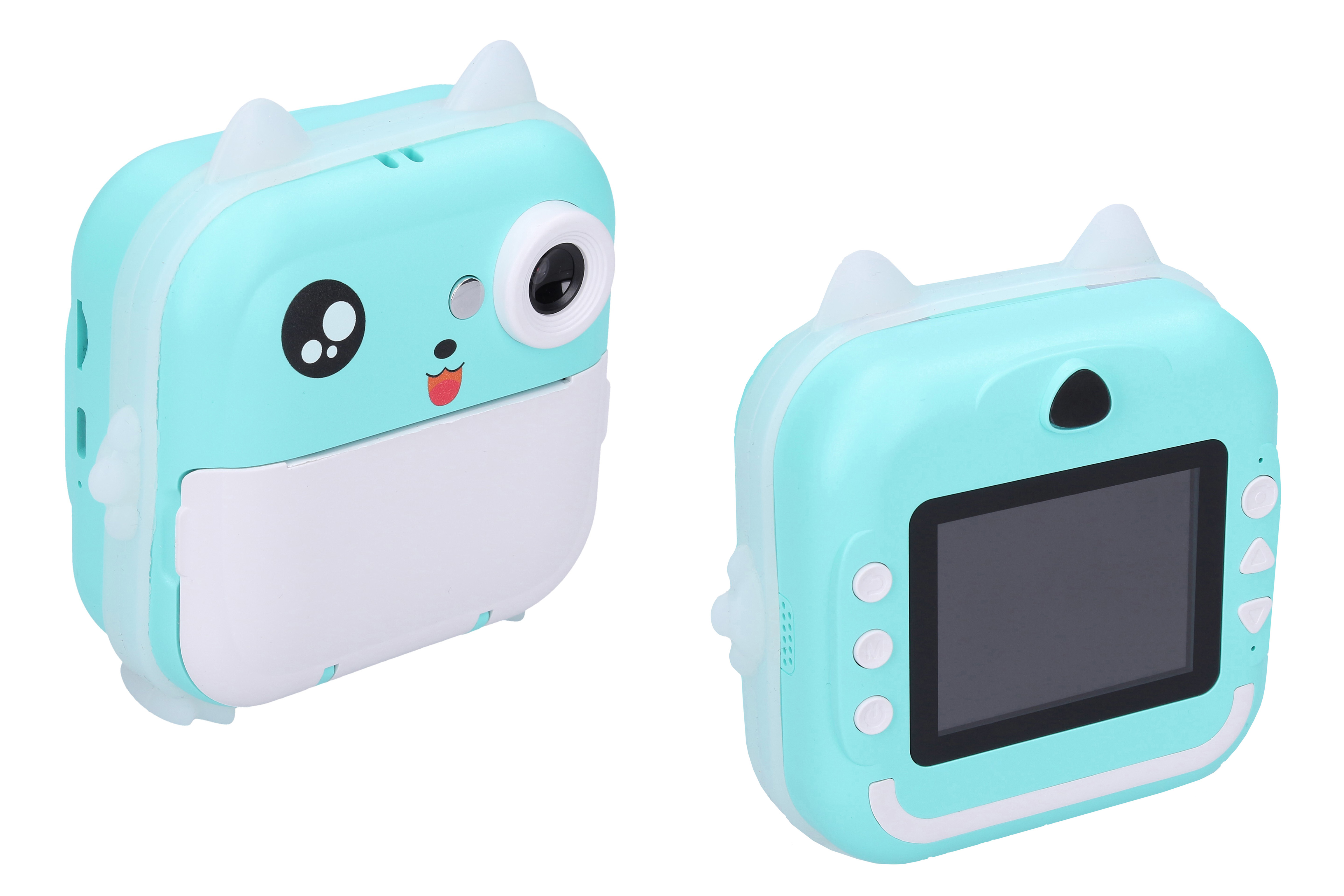 Dětský digitální fotoaparát s tiskárnou a bluetooth aplikací kočka - foto 48Mpx, video Full HD. Rozměry 10,5x4,5x10,2 cm. Rozlišení fotografií 48 megapixelů, videa Full HD (1920x1080). Svítící rohy silikonového rámečku. Nastavení kvality tisku. Časovač, sériové snímání, 6x digitální zoom, vložení času, různé efekty (rámečky, vložené animace, filtry) fotografií, hry, 2,4 palcový displej. Aplikace FUN PRINT pro iOS/Android - funkce: tisk fotek, souborů, štítků, bannerů, šablon (pro úkoly, poznámky), rozpoznání textu. Vestavěná baterie Li-ion baterie, USB-C kabel součástí. Šířka fotopapíru 5,5 cm, tisknutelná šíře 4,8 cm. 2 role fotopapíru a popruh součástí. Kompatibilní s micro SD kartami - max. 32 GB. Paměťová karta není součástí.