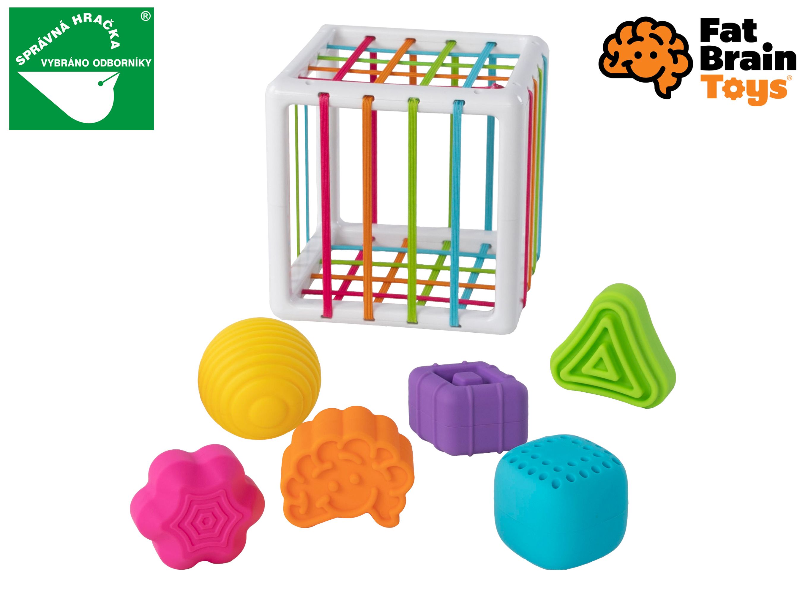 Vkládání a vyjímání kostek přes pružné stěny kostky je skvělá zábava a smyslový zážitek.
