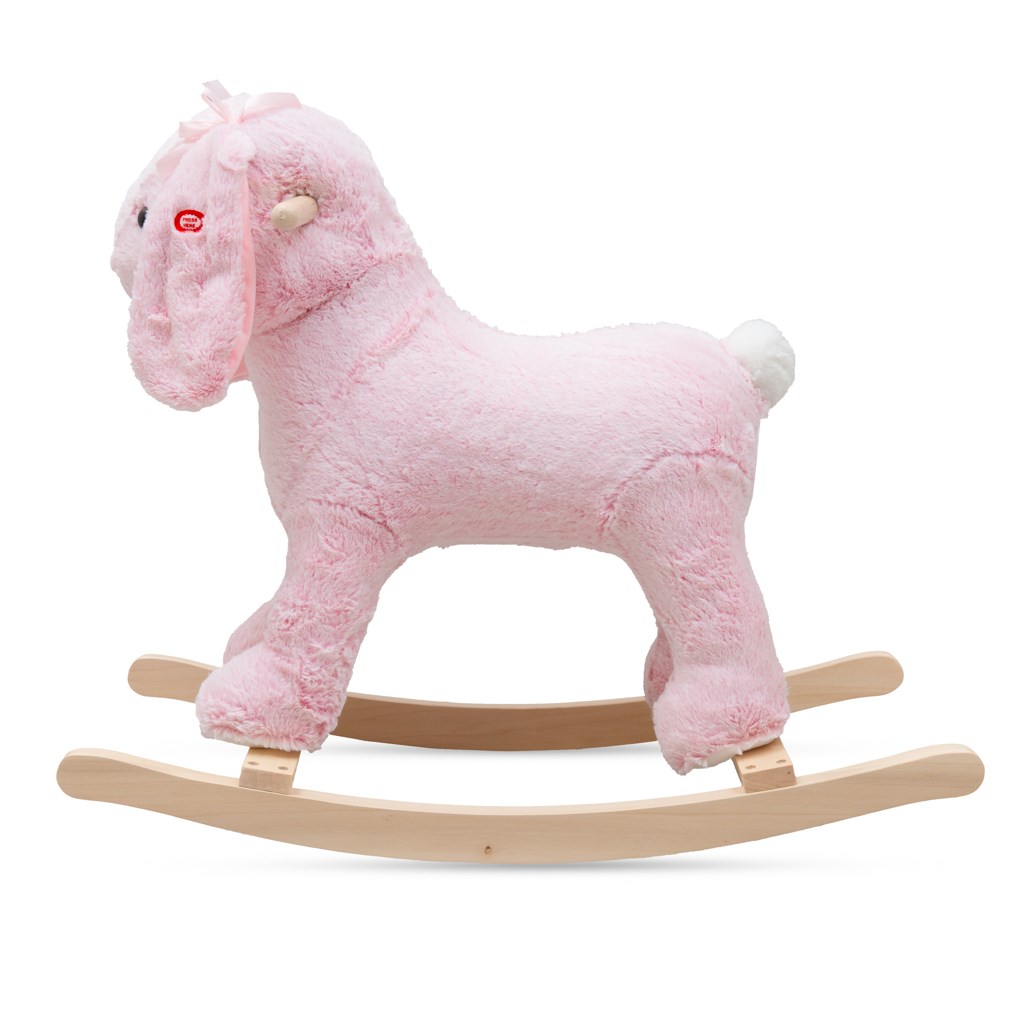Stabilní dřevěné lyžiny a úchyty zajišťují bezpečné houpání, zatímco melodie aktivovaná tlačítkem rozvíjí sluch a přináší dětem spoustu radosti. Králíček má pohodlné sedátko bez opěrky – ideální pro starší batolata, která už umí udržet rovnováhu.