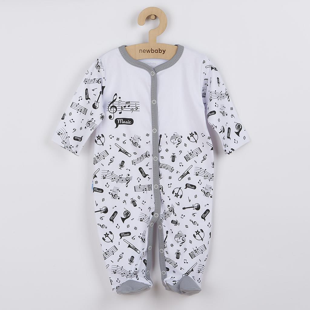 Originální, hravý a zároveň veselý bavlněný kojenecký overal New Baby Music pro miminka. Dětský overálek má rukávky a spodní část celopotištěnou notičkami a hudebními nástroji. Vrchní část je zdobena roztomilým obrázkem notiček a nápisem Music. Zapínání na cvočky po celé délce a mezi nožičkami usnadní oblékání a přebalování. Díky nápaditému designu bude děťátko v overálku velmi originální. Klademe důraz na kvalitu a proto se díky příjemnému, měkkému a kvalitnímu materiálu, bude Vaše miminko cítit velmi příjemně. Náš overálek je vhodný pro kluky i holčičky. Složení: 100% bavlna. Rozměry: obvod kolem hrudníku cca 46 cm, celková délka cca 45 cm, délka od rozkroku cca 15 cm, délka rukávú cca 17 cm.