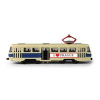 Originální kovová retro tramvaj T3 s nápisem PRAGUE a měřítkem 1:87, která jezdí na zpětný chod. Délka tramvaje je cca 16 cm a prostřední dveře je možné manuálně otevřít. Jedná se o nejpočetněji vyráběný tramvajový vůz na světě. Takže ty, jako správný fanda těchto sběratelských kousků ji rozhodně musíš mít!