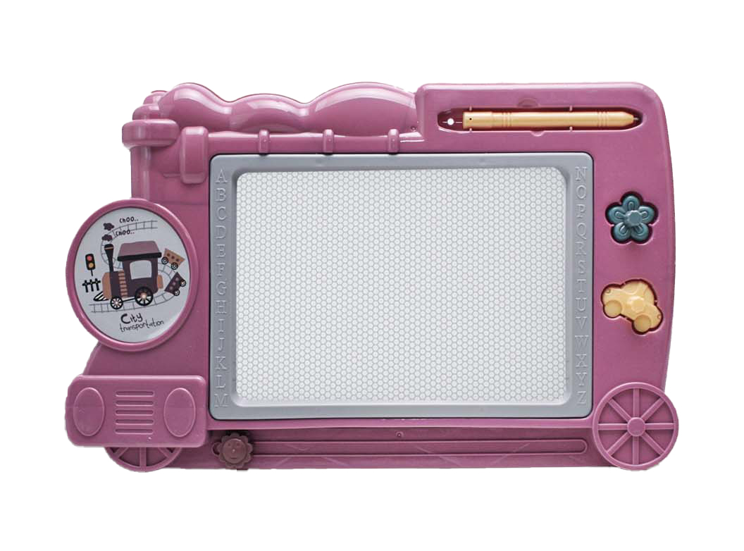 Magická kreslící tabulka. Velikost 33cm. Obrázek se maže posuvníkem. Obsahuje tužku na kreslení, magnetky na razítkování na tabulku.