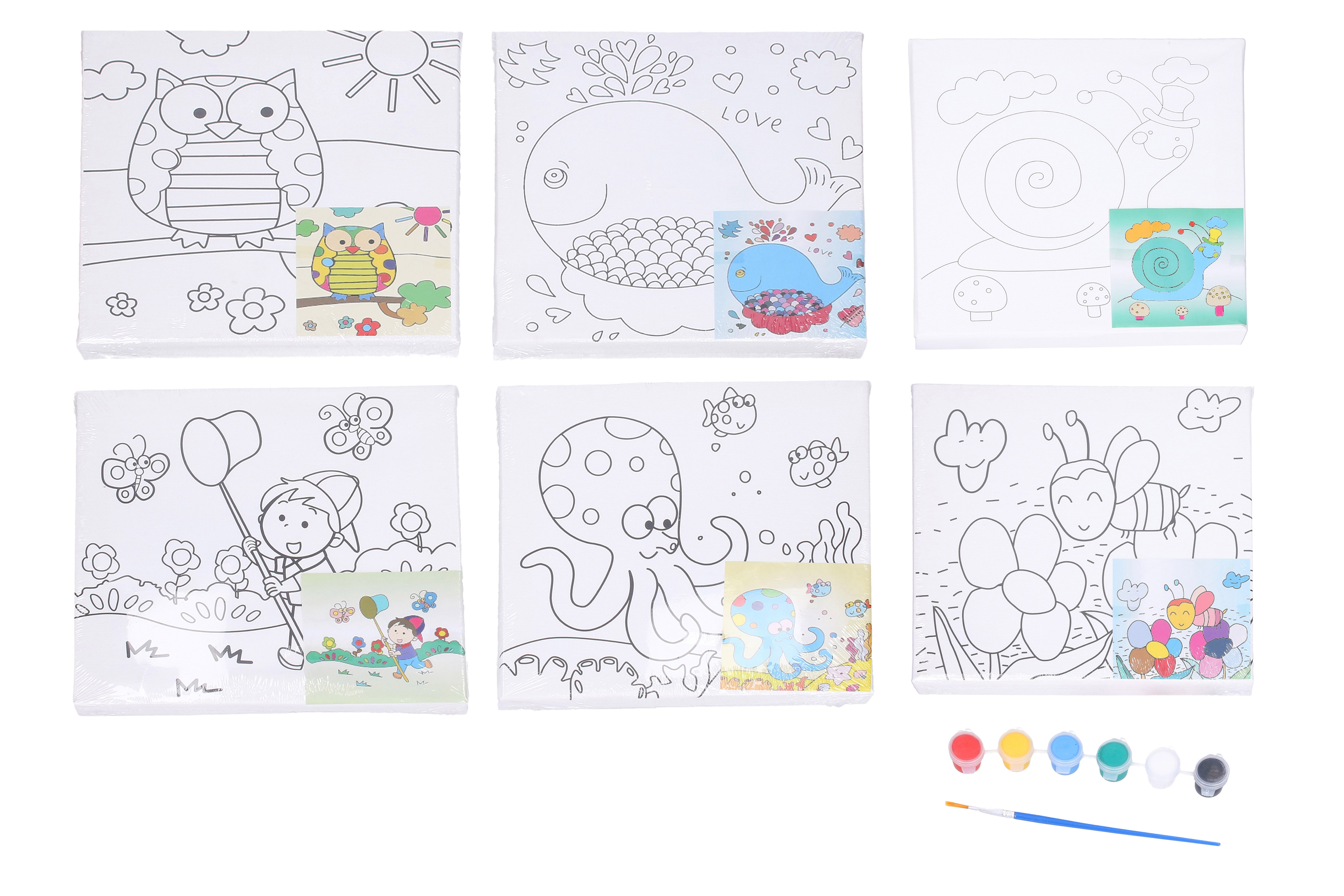 Malířské plátno s předlohou o velikosti 20x20 cm + barvy a štětec.