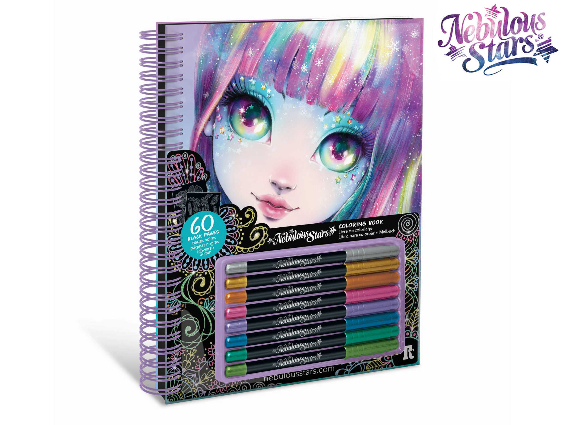 Nebulous Star Omalovánky s černými stránkami Isadora. Rozměry bloku 26x22x3 cm. 60 černých stránek s obrázky k vymalování, 8 metalických gelových fixů, Isadořin příběh. Display box 6 ks.