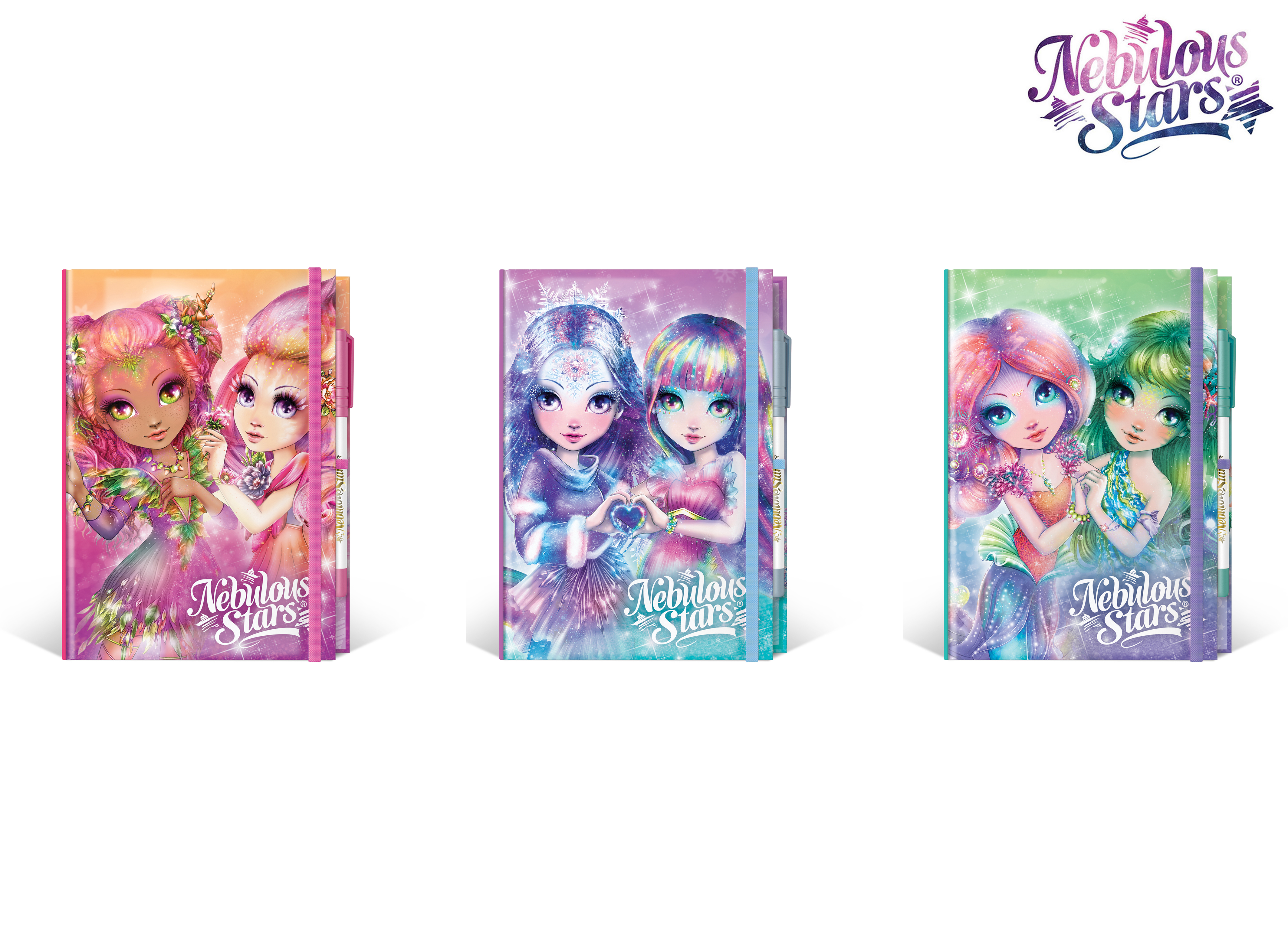 Nebulous Stars deníček. Velikost 20x15 cm. Deníček s bílými stránkami, 96 stran, pero. Display box - 6 ks. 3 varianty - bílá, fialová, růžová.