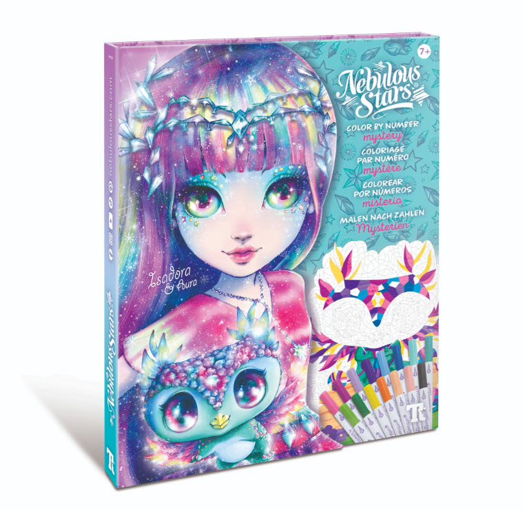 Nebulous Stars Malování podle čísel set s fixy. Rozměry 31,5x25,5 cm. Display box - 6 ks. Obsahuje 36 stránek s ilustracemi k vymalování, 15 oboustranných fixů. Pevný obal a magnetické uzavírání, ideální na cesty.