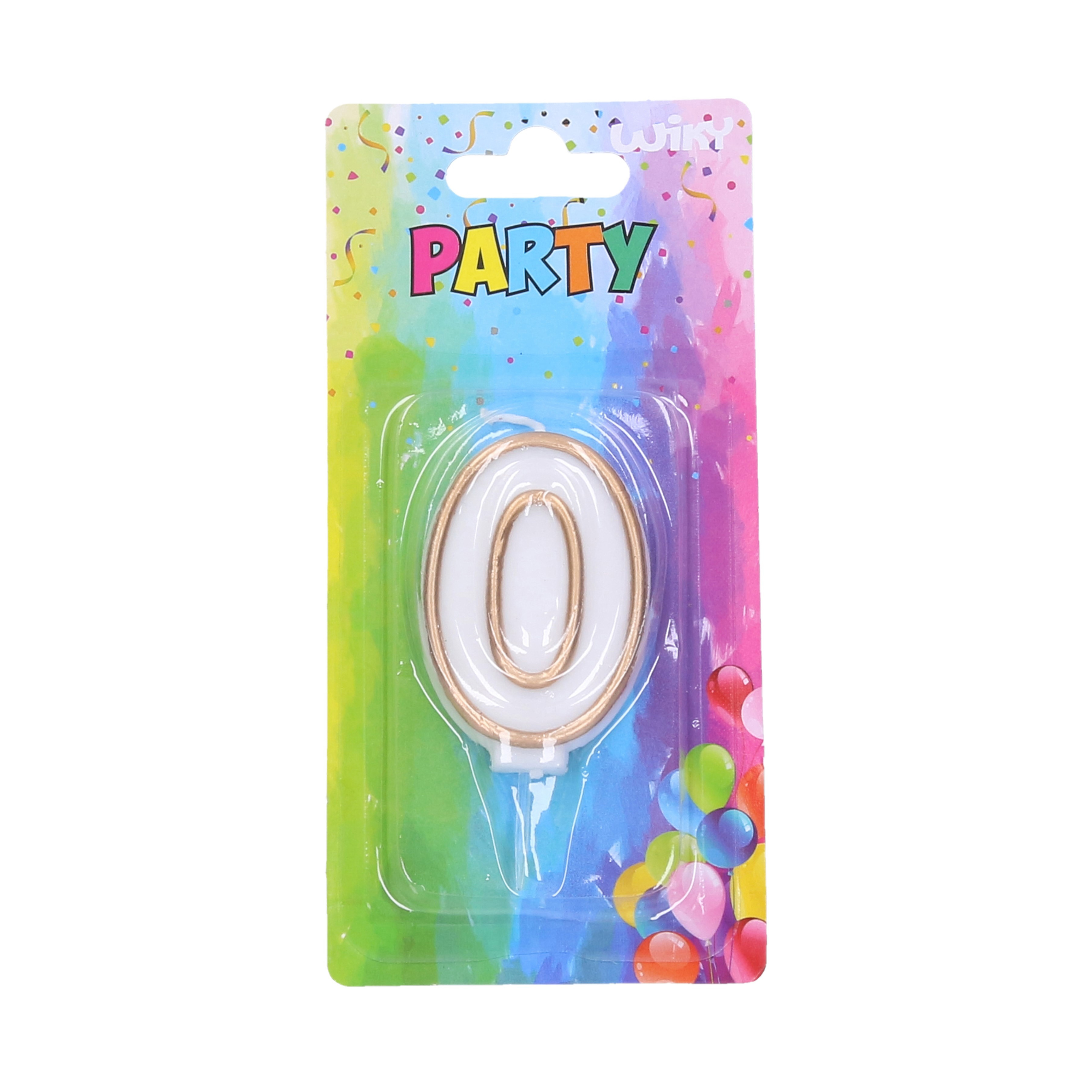 Bílá svíčka se zlatým lemem ve tvaru čísla se stojánkem z vosku pro pohodlné a pevné umístění na dort.