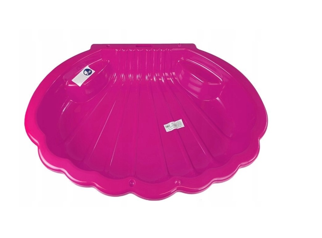 Plastové dětské pískoviště nebo bazének ve tvaru mušle. Růžová barva. Rozměry 108x78x18,5 cm. Při koupi 2 kusů mušle lze pískoviště zavřít.