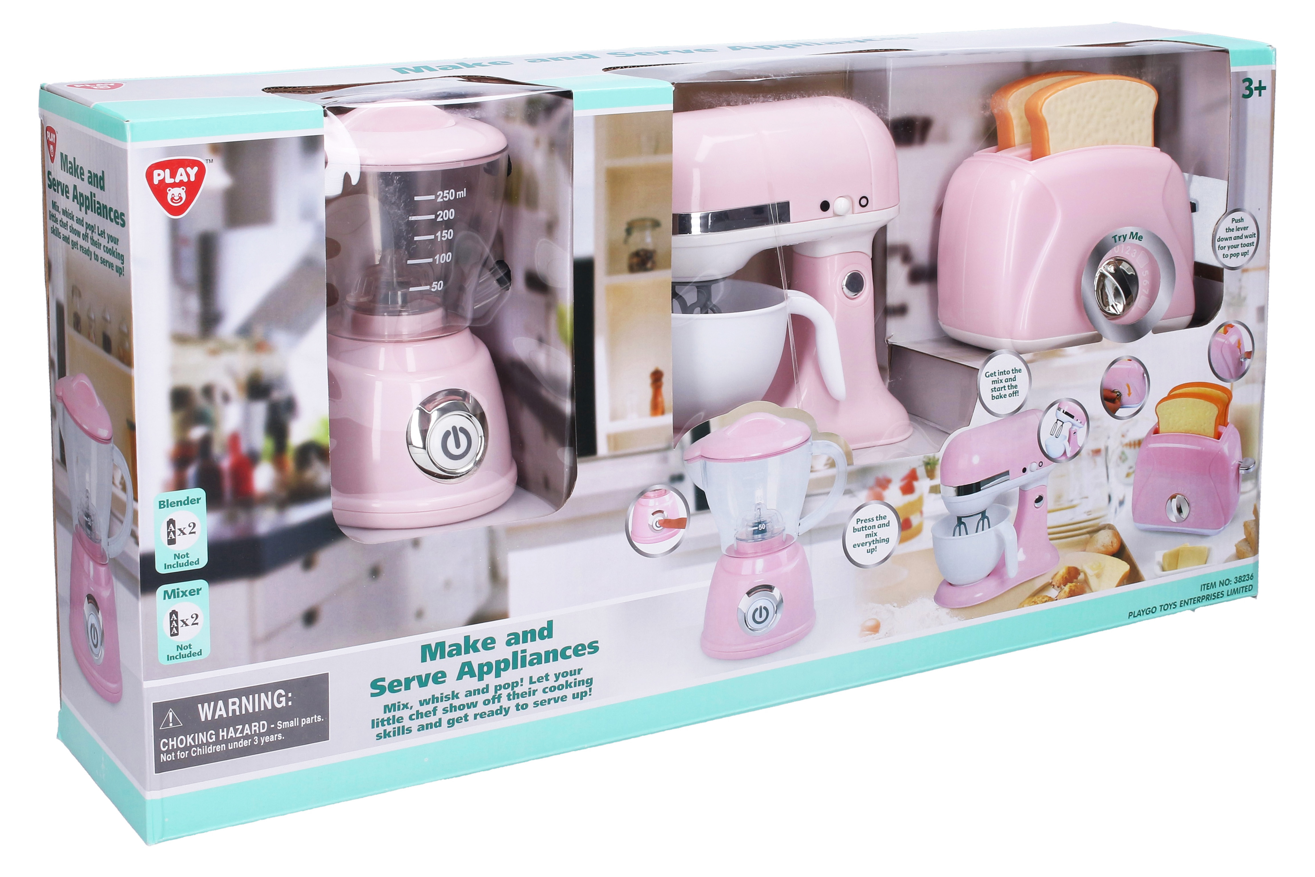 Mixuj, šlehej nebo připrav toasty. Ukaž své kuchařské dovednosti s touto dokonalou kuchařskou sadou v nádherné růžové barvě. Zařiď si svou kuchyňku v moderním stylu! Přístroje fungují, jako opravdové, vyzkoušej je všechny.  Součástí sady je topinkovač, mixér, šlehač. Světelné a zvukové efekty. Doporučený věk: od 3 let Baterie 2xAA, 2xAAA nejsou součástí balení.