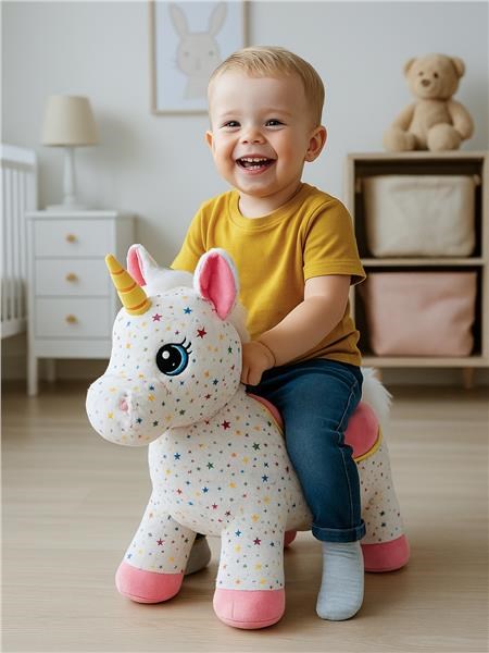 Plyšové nafukovací hopsadlo je zárukou dlouhotrvající zábavy pro Vaše dítě. Při hopsání dítě posiluje nohy, učí se koordinovat pohyby a držet stabilitu. Hopsadlo se pohodlně drží za uši a obsahuje zvukový modul, který po zmáčknutí mezi ušima vydává realistický zvuk koníka. Je potaženo plyšovým materiálem, který je příjemný na dotek a neklouže. Součástí balení je pumpička k pohodlnému nafouknutí a baterie (3xLR44).