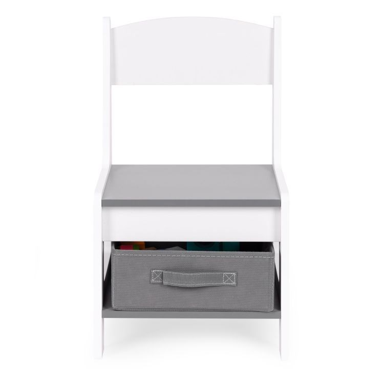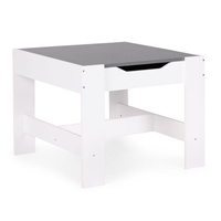 Součástí sady jsou 2 židle a stůl. Nábytek má odolnou a stabilní konstrukci z MDF. Stůl je vybaven oboustrannou, odnímatelnou deskou, z nichž jedna strana slouží jako tabule na křídu. Pod deskou se nachází praktický úložný prostor na kostky, hračky nebo jiné drobnosti. Pod sedáky židlí jsou umístěny prostorné textilní zásuvky vhodné pro ukládání hraček. Sada je ideální do dětského pokoje, heren nebo čekáren.