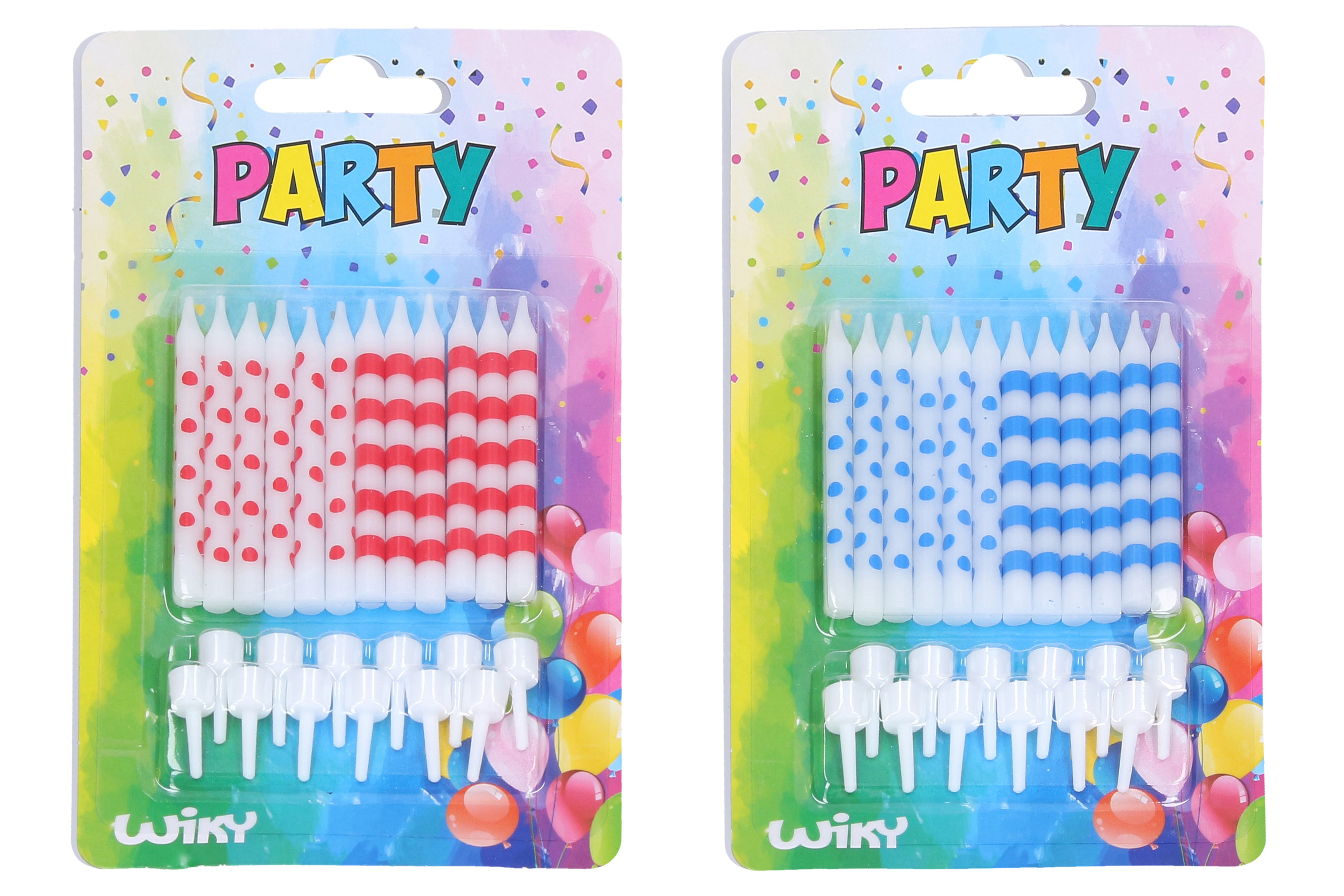 Balení 12 ks svíček s puntíky a proužky + stojánků Barevné varianty - červená, modrá