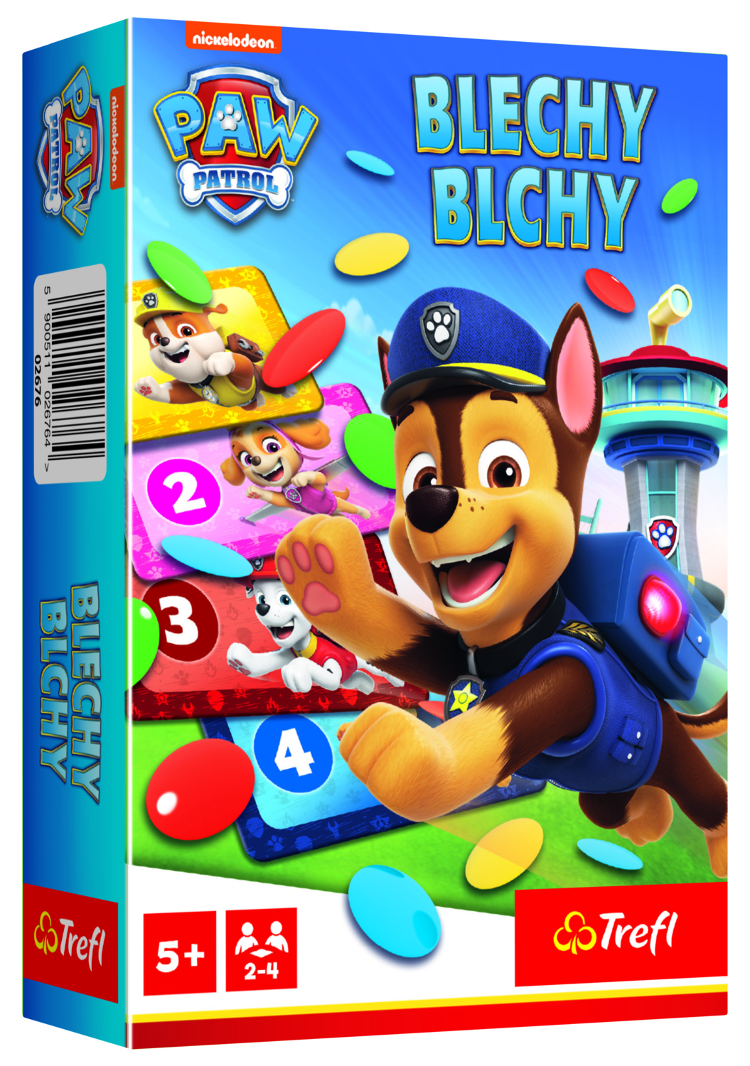 Trefl HRA Blechy Paw Patrol. Dovednostní hra, ve které se hráči snaží trefit žetony do domečku pomocí blešek. Zjistěte, kdo obsadí nejvíc bodované domečky a vyhraje souboj!