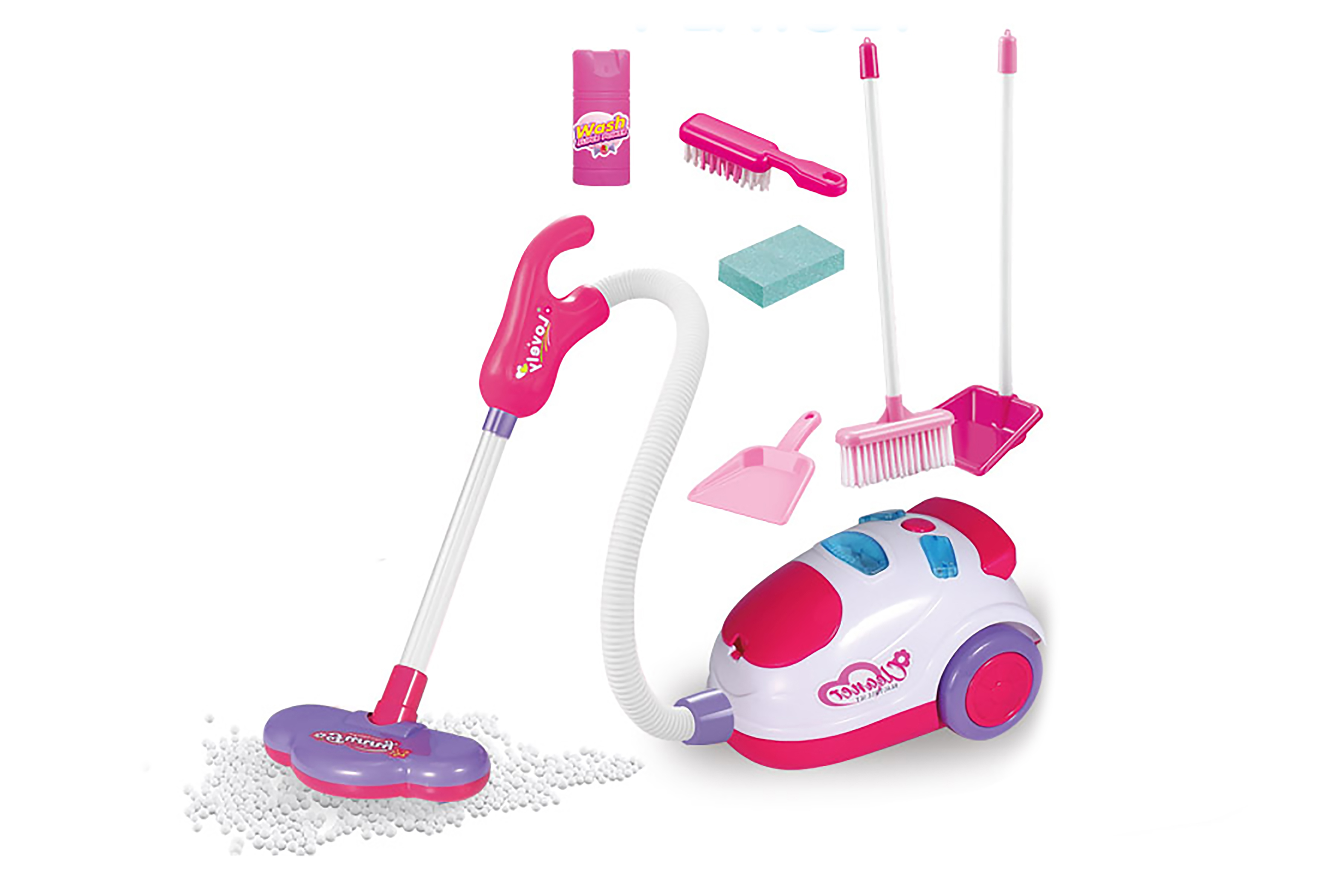 Uklízecí se s vysavačem a efekty 9ks. Obsah balení - vysavač, smeták a smetáček, malá a velká lopatka, kuličky k vysávání, sprej, houbička. Vydává světelné efekty. Baterie 3xAA, nejsou součástí. balení. Vysavač po zapnutí vypínače vysává polystyrenové kuličky. Otevřením vysavače lze kuličky vysypat.