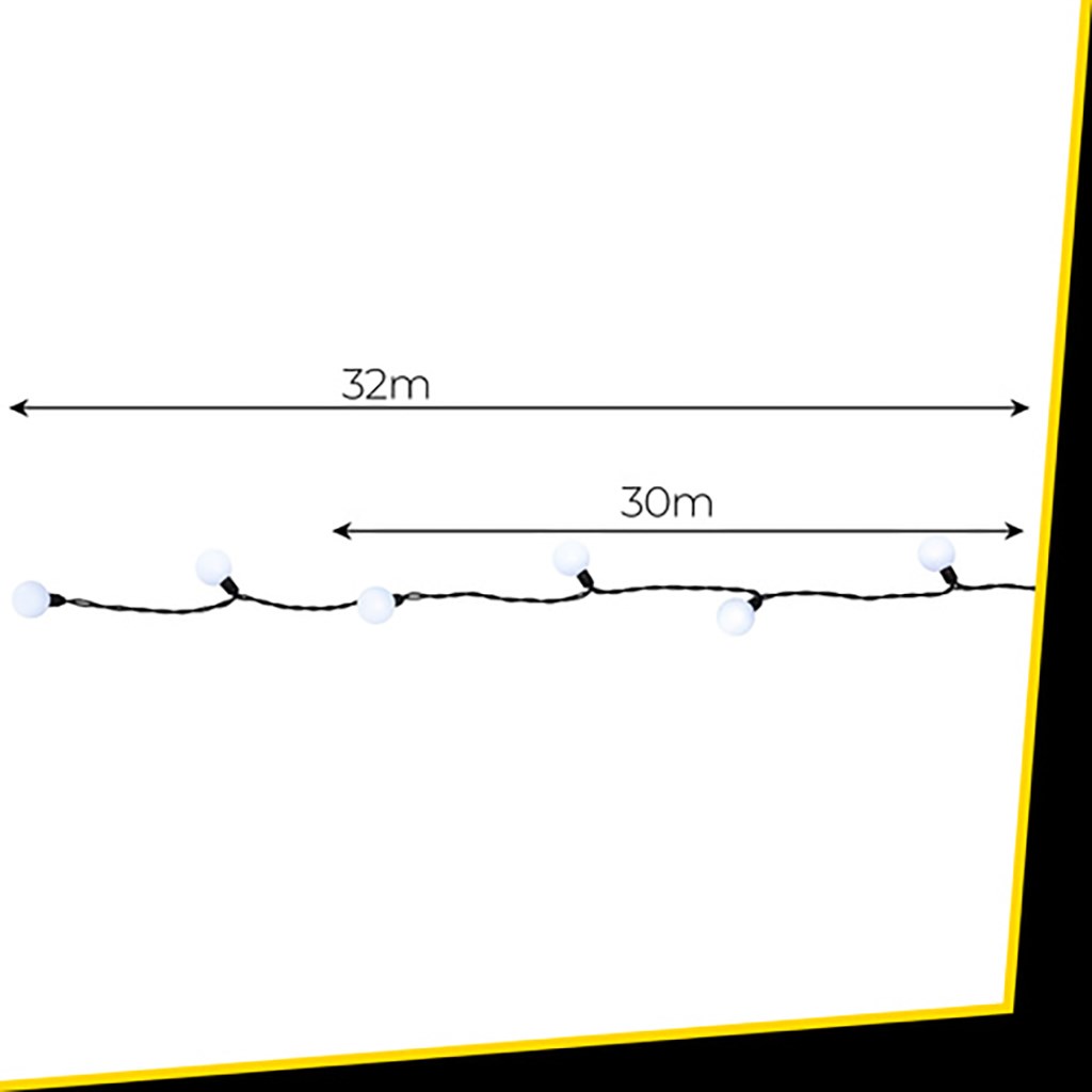 Díky 300 teple bílým LED diodám a délce 30 metrů vytvoří tyto světýlka výjimečnou atmosféru plnou světla – ať už v obýváku, na balkoně, terase nebo na fasádě. Osm režimů svícení včetně efektu FLASH vám umožní nastavit osvětlení podle nálady – od jemného blikání až po pravou vánoční světelnou show!