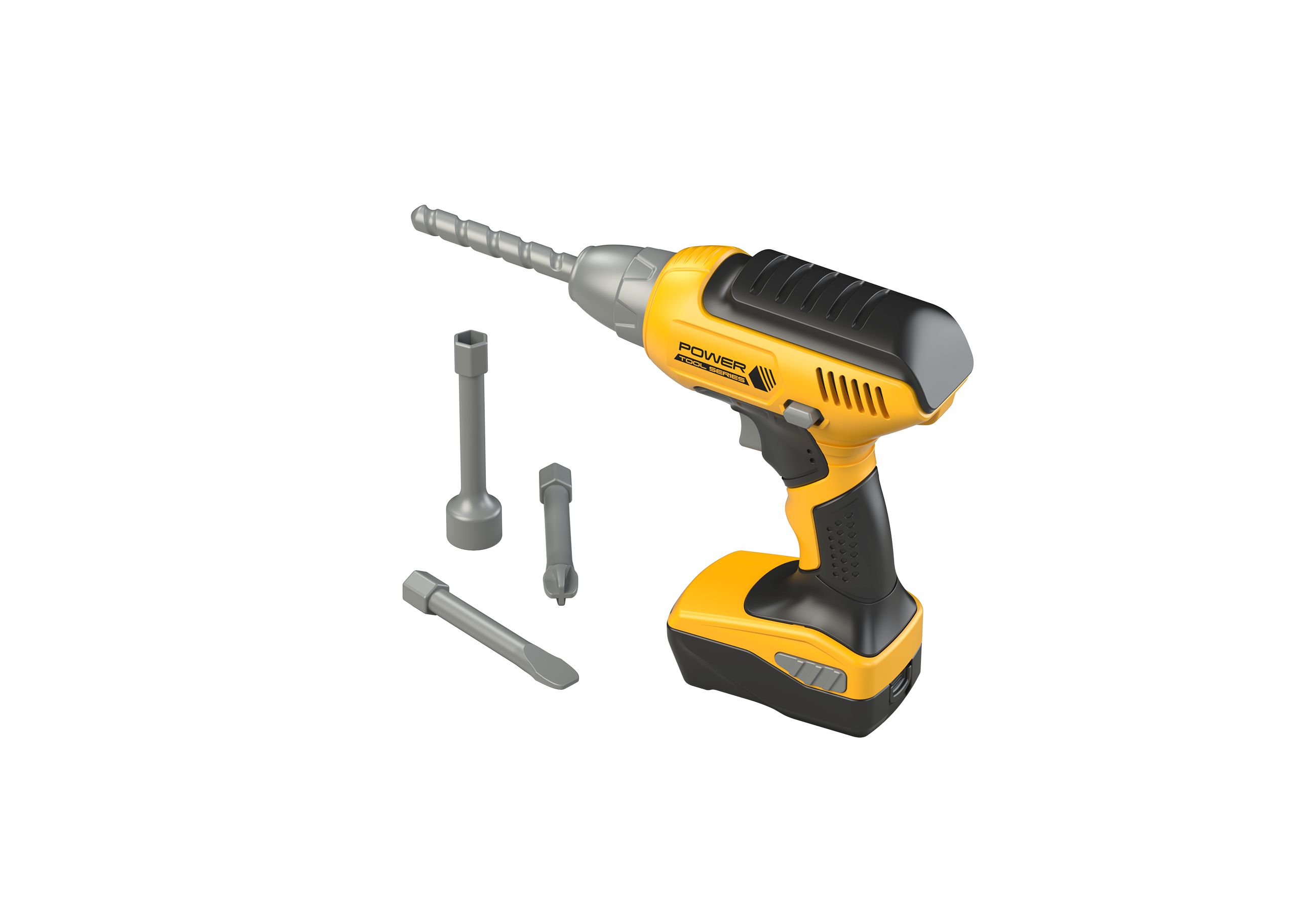Vrtačka set. Rozměry 17,5x6x21,5 cm. Světelné efekty. 3xAAA baterie nejsou součástí. Přepínač ON/OFF na vrtačce. Součástí 1 vrták, 2 šroubováky, 1 klíč.