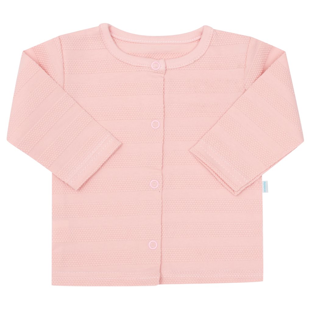 Roztomilá kojenecká 4-dílná soupravička české značky New Baby I AM pro miminka. Soupravička je vyrobena z velmi příjemného, měkkého a kvalitního materiálu, který je vhodný pro miminka a je vhodná nejen do porodnice. Obsahuje celorozepínací body s dlouhým rukávkem, dupačky, kabátek a čepičku. Body má boční zapínání po celé délce a mezi nožičkama na cvočky. Dupačky mají zapínání na cvočky na ramínkách a mezi nožičkama, coš usnadní oblékání a přebalování. Kabátek má zapínání na cvočky po celé délce. Čepička s širším lemem dobře drží na hlavičce miminka a nepadá. Je velmi praktická a netlačí na hlavičku miminka. Celá soupravička má nový neobyčejný design s atraktivním vzorem látky. Je navržena s ohledem na potřeby miminka a je vhodná i jako milý dáreček. Soupravička je v praktické Eko krabičce. Složení: 100% bavlna.