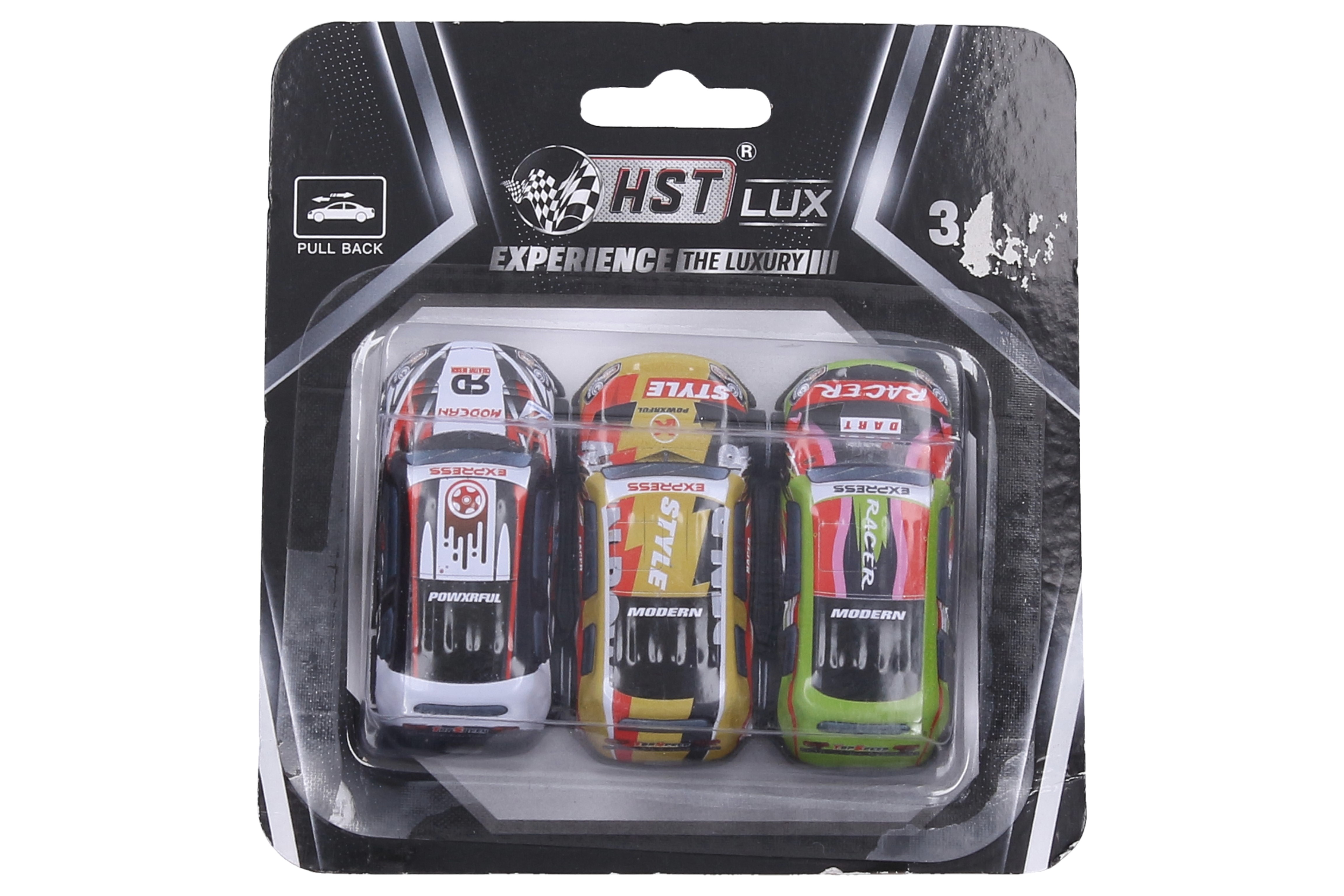 Auto kovové na zpětné natažení set. Velikost autíčka 6,8x2x3 cm. Balení obsahuje 3 auta.