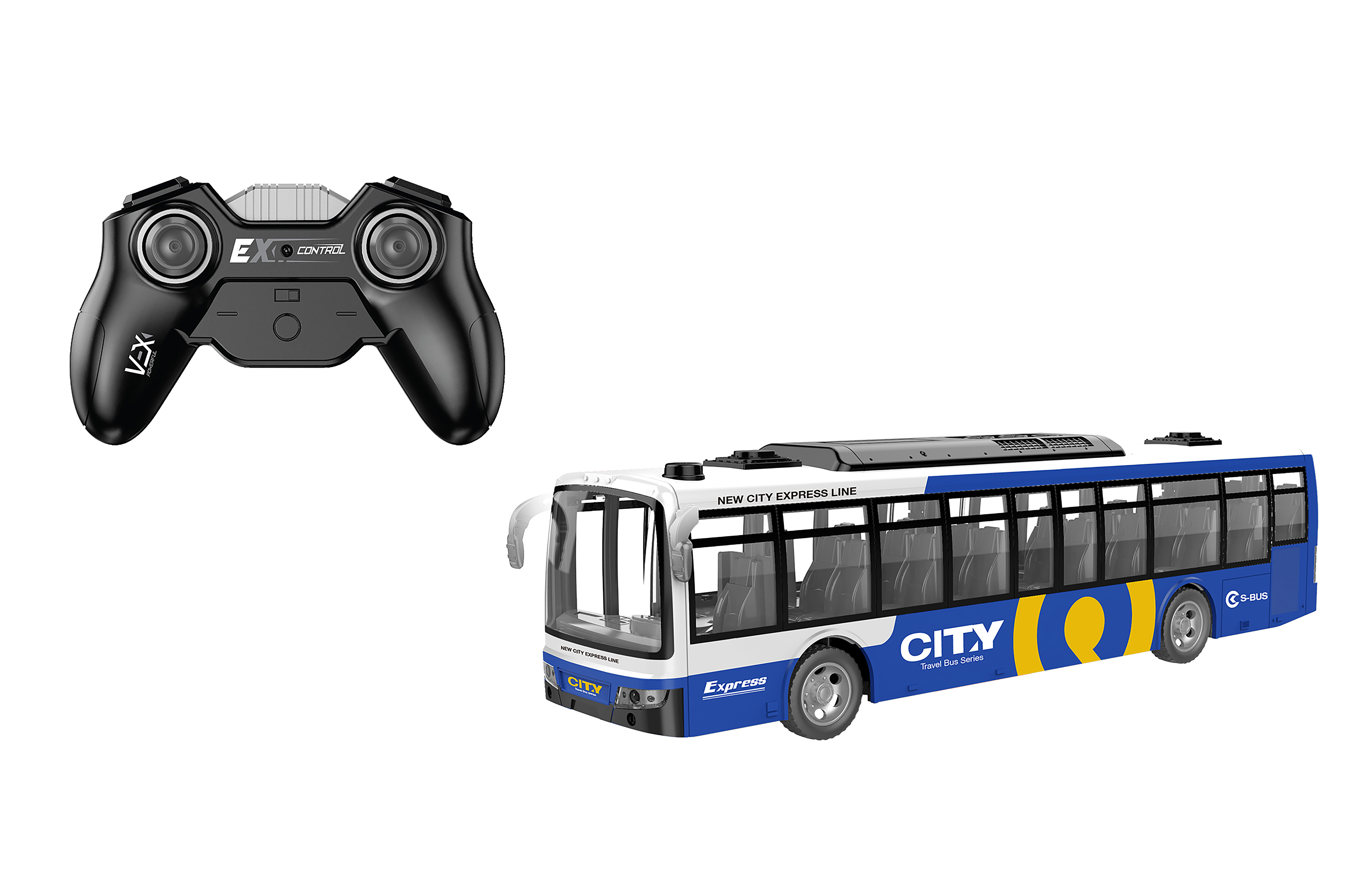 Autobus RC na dálkové ovládání. Rozměry 38x8x8 cm. Frekvence 2.4GHz. Světelné efekty. Bateriový pack 3.7V Li-ION 500mAh do autobusu součástí, 2xAA do ovladače nejsou součástí. USB kabel součástí. Přepínač ON/OFF na spodní straně autobusu a na ovladači.