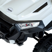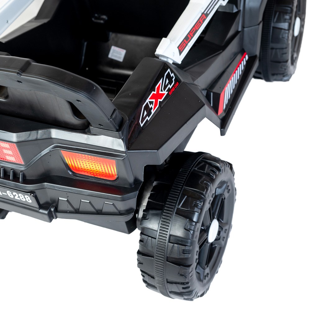 Pro lepší viditelnost nabízí dětská elektrická Buggy přední LED světla, která dodávají futuristický vzhled. Vestavěné reproduktory umožňují přehrávání oblíbené hudby, zatímco vzdělávací funkce mohou děti zabavit a učit. Robustní konstrukce a kvalitní materiály zajišťují bezpečnost a pohodlí během jízdy.