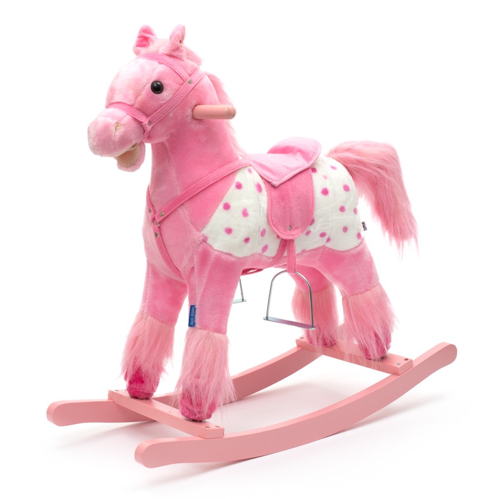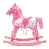 Měkoučký houpací koník Baby Mix byl navržen pro děti, které mají rády dobrodružství. Vypadá jako opravdový, takže se vaše dítě bude cítit jako skutečný jezdec. Koník je vyroben z měkkého plyše a je vybaven dřevěnými houpacími lištami, jejichž profil chrání dítě před převrácením. Pohodlné sedlo, pevná uzda, kovové třmeny, dřevěné rukojeti a stabilní houpací lišty zajistí vašim kovbojům ještě větší stabilitu a pohodlí během houpání. Je vyroben z měkkého plyšového materiálu, pevné dřevěné lišty nebo rukojeti lze snadno odšroubovat. Po stisknutí tlačítek na ouškách koník vrtí ocáskem, hýbe tlamičkou, ozvou se zvuky cvalu, koník zařehtá a zazpívá kovbojskou písničku. Tři potřebné baterie AA 1,5 V se vkládají do pouzdra umístěného na bříšku koníka a nejsou součástí balení. Během houpání se dítě učí koordinovat pohyby svého těla s koníkem, což zlepšuje celkovou rovnováhu a motoriku dítěte.