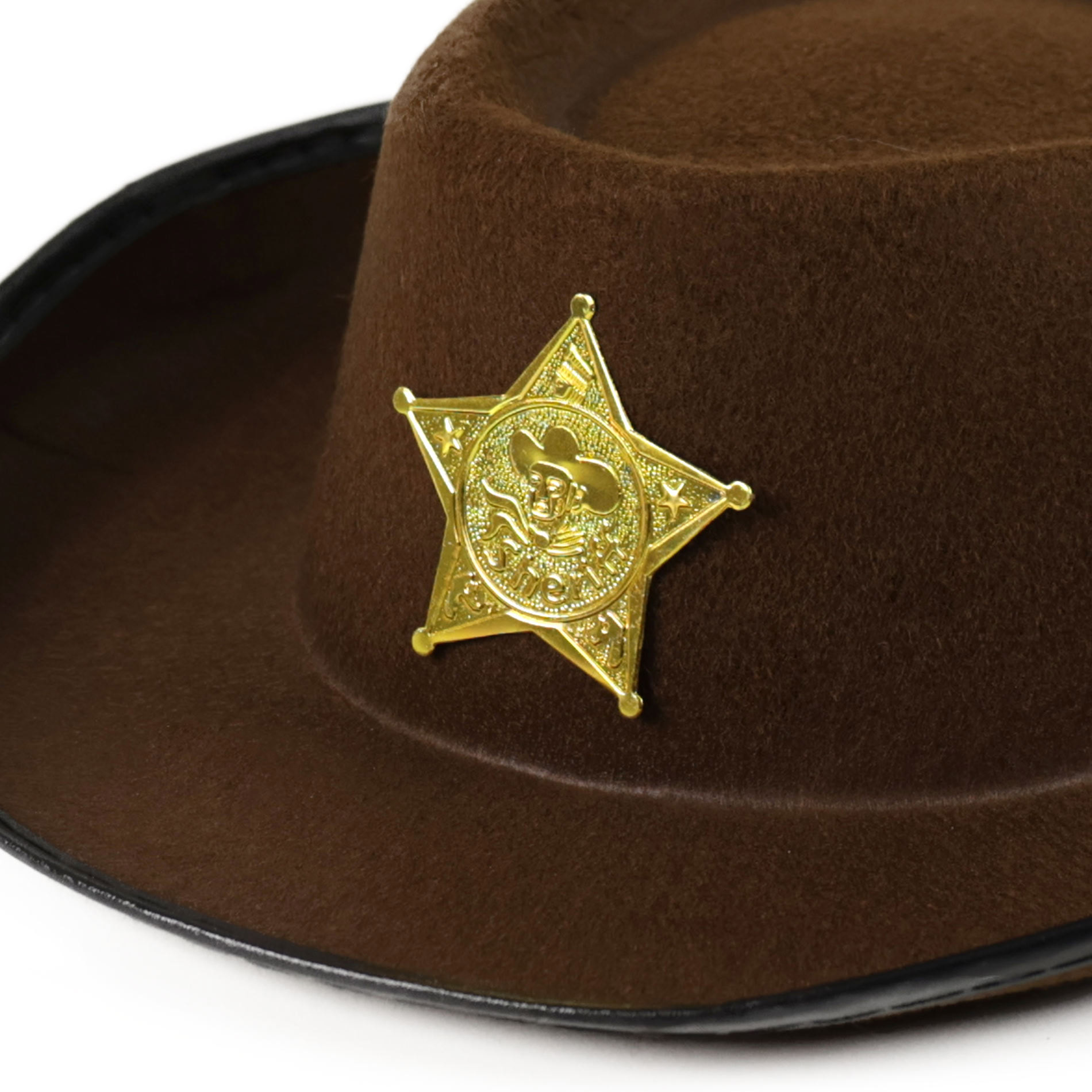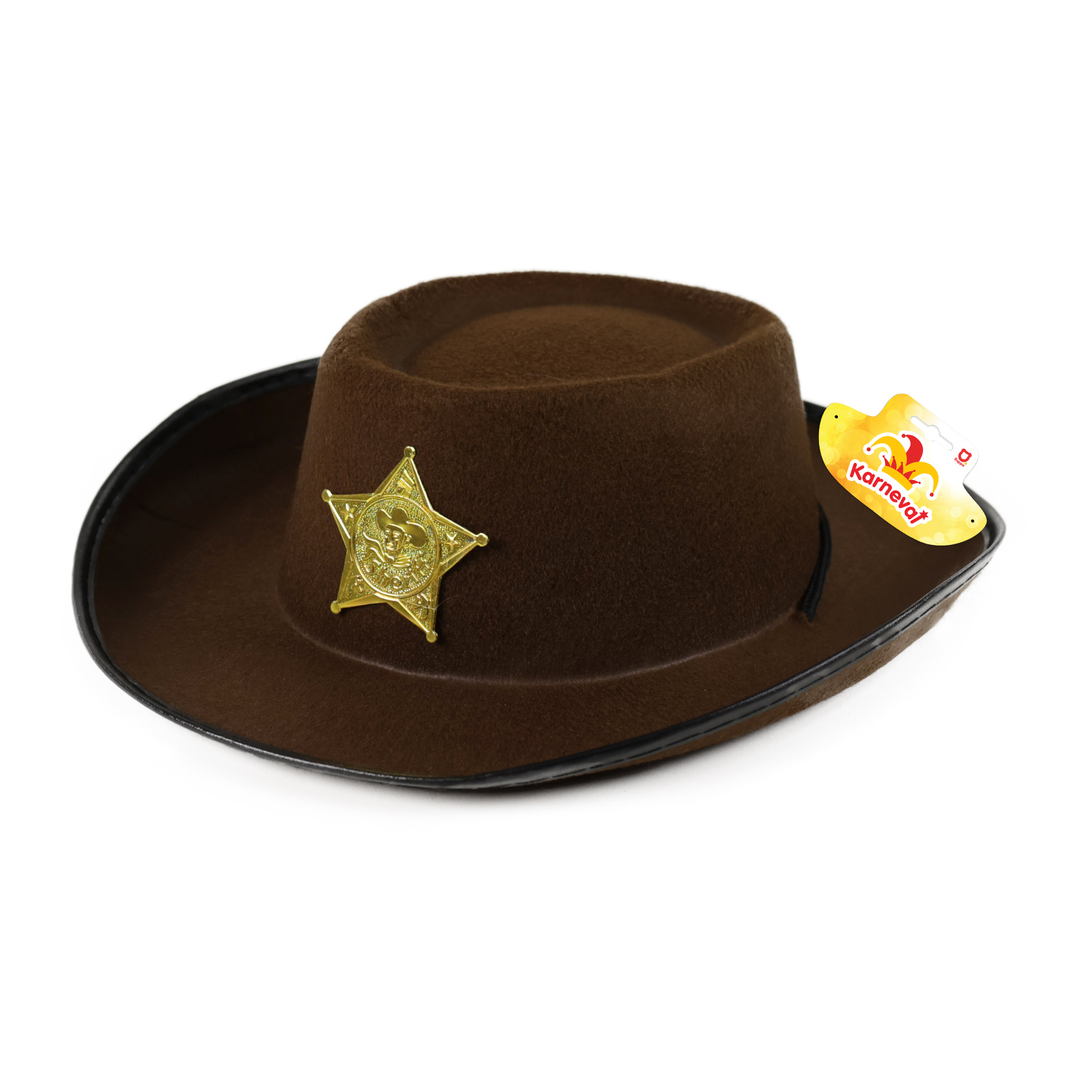 Stylový kovbojský klobouk pro děti! Tento hnědý klobouk je zdoben šerifskou hvězdou. Nasaď si klobouk a jako šerif budeš mít ve svém městě určitě respekt!