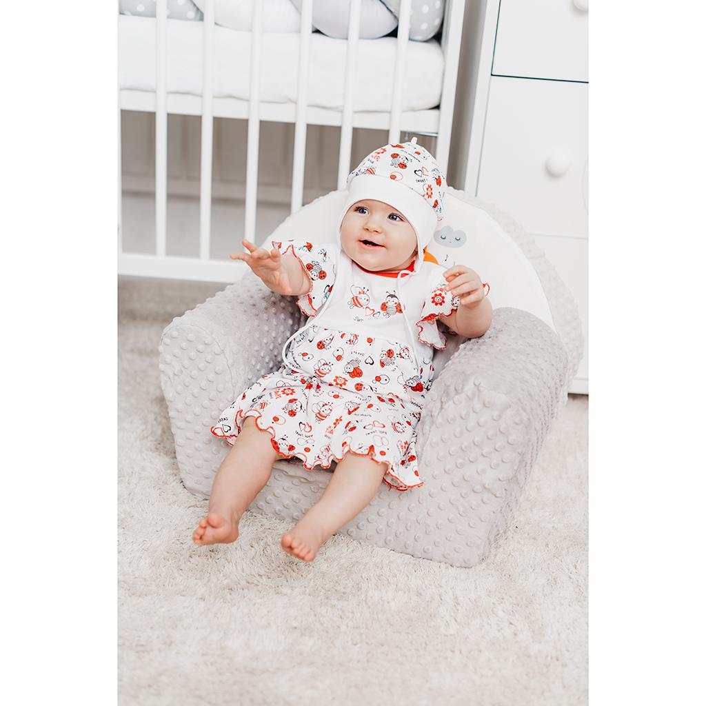 Krásná dětská bavlněná čepička New Baby Beruška pro Vaše miminko. Čepička se zavazuje pod krkem na tkaničky, má široký pružný lem, který krásně kryje oušká a netlačí. Čepičku zdobí obrázek berušek a jistě bude slušet všem holčičkám. Velmi příjemný, kvalitní materiál. Složení: 100% bavlna. Obvod: cca 40 cm.
