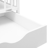 Postýlka je vybavena šuplíkem připevněným k postýlce kuličkovými pojezdy, nedotýká se země. Lze ji zcela vyjmout a znovu vložit.