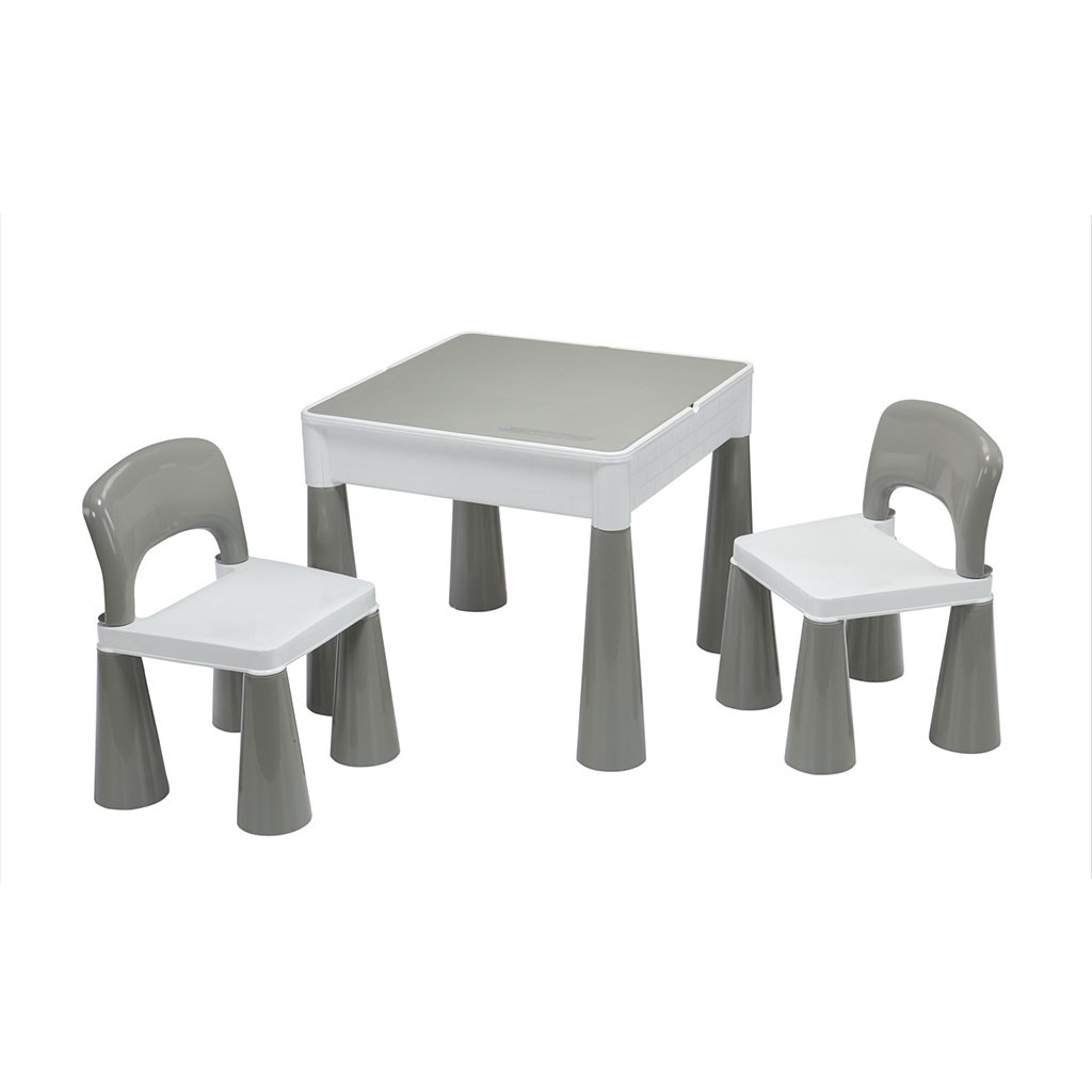 Dětská sada New Baby obsahuje stůl a 2 židličky. Stoleček je velmi praktický, otočením horní desky se stane základem pro stavění kostek stavebnice Lego Klasik i Lego Duplo. Pod horní deskou je prostor pro uskladnění hraček, kreslících potřeb, apod. Do prostoru lze po odstranění horní desky také nalít trošku vody a dítě si naplno užije své oblíbené vodní radovánky nebo lze v tomto prostoru vytvořit mini pískoviště. Rozměry: stůl 51x51x46cm, židlička 36x32x46cm (š,d,v). Výška sedátka 25cm.