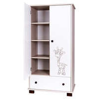 Nádherná dřevěná dětská šatní skříň Drewex s veselým obrázkem. Dětská skříň je ideální pro uchovávání oblečení a potřeb pro miminka. Ve spodní části je objemný šuplík. Rozměry: cca 160x83x48 cm.