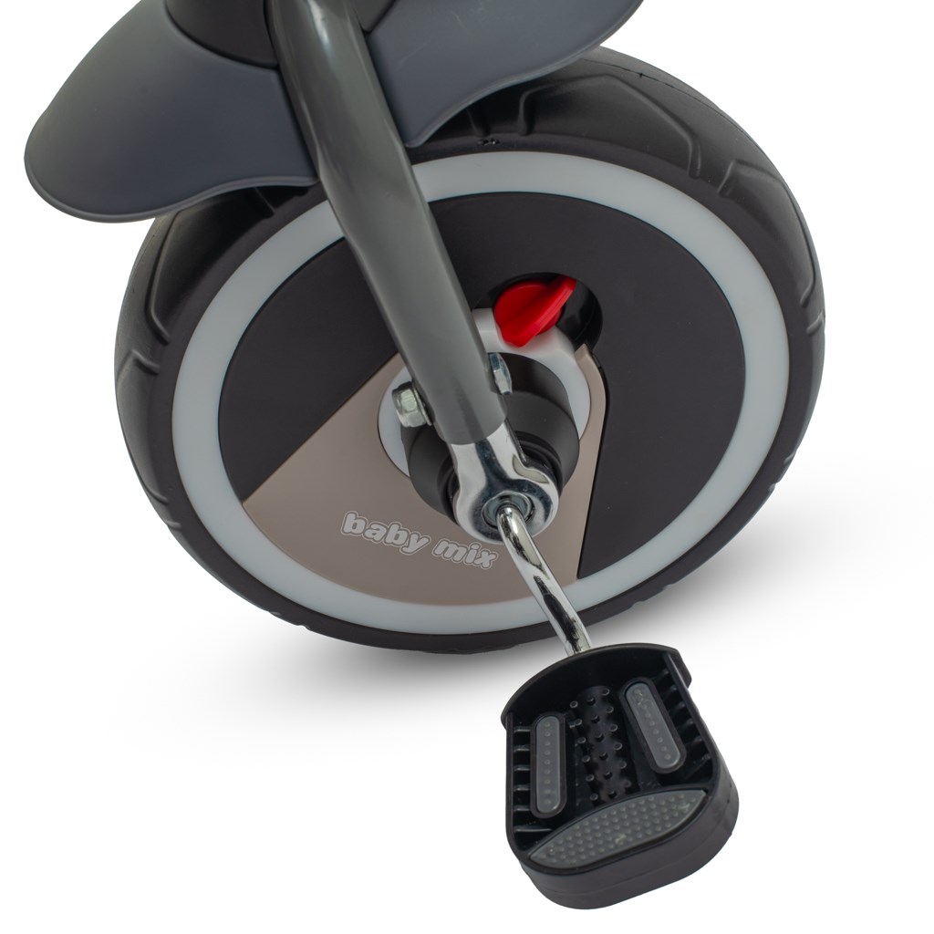 Dětská šlapací tříkolka Baby Mix 5v1 RELAX 365 je multifunkční dopravní prostředek a je typickým příkladem produktů GROW UP – roste zároveň s dítětem. Tříkolku může ovládat jak dítě, tak i rodič pomocí nastavitelné vodicí tyče. Po odebrání vodicí tyče, sklápěcí stříšky, která chrání před sluncem, nebo ostatních komponent bude sloužit jako tříkolka. Má moderní konstrukci, pohodlné a ergonomicky tvarované sedadlo, které je posuvné a otočné o 360 stupňů, což umožní dítěti cestovat ve směru nebo proti směru jízdy. Je vyrobena z kvalitních a odolných materiálů a skládací konstrukce umožňuje bezproblémovou přepravu tříkolky například v kufru auta. Její skládání je velmi jednoduché, intuitivní a nevyžaduje žádné nářadí.