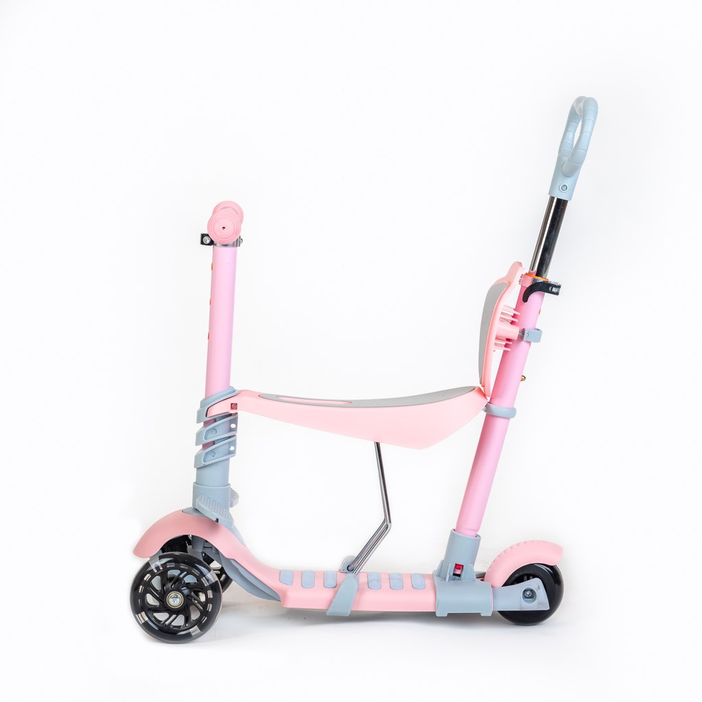 Multifunkčnost koloběžky umožňuje snadné přeměny: Tuto koloběžku lze snadno přizpůsobit podle vašich potřeb: můžete ji využívat s pohodlným sedátkem nebo jen jako klasickou koloběžku bez sedla. K dispozici je také volba s vodící tyčí pro rodičovskou kontrolu nebo bez tyče pro samostatnou jízdu. Navíc výškově nastavitelná řídítka a odnímatelná vodící tyč pro rodiče umožňují plynulé přizpůsobení podle růstu a potřeb vašeho dítěte.