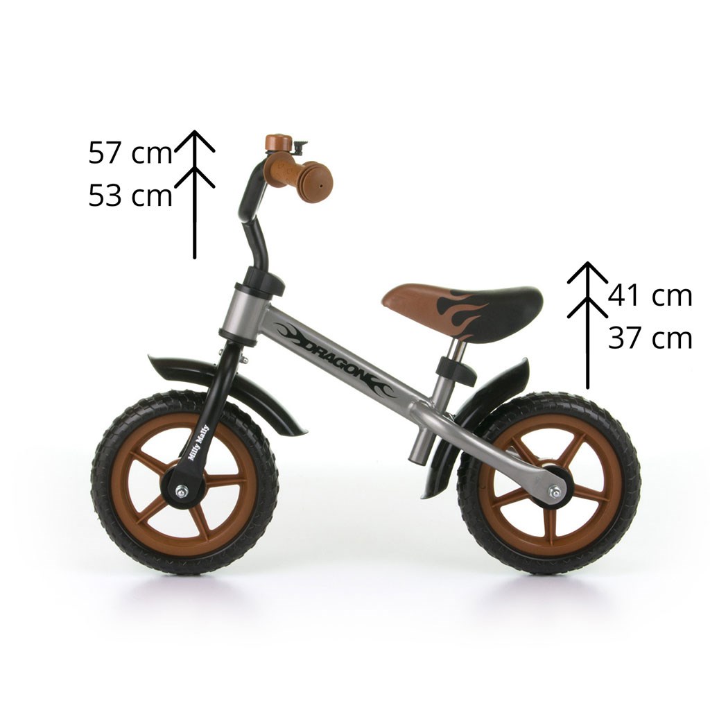 Dětské odrážedlo-kolo Milly Mally Dragon je ideální, když se dítě učí udržet rovnováhu. Je tou nejlepší alternativou pro kolo s bočními kolečky, takže pozdější jízda na klasickém kole bude mnohem jednodušší. Kolo je bez pedálů, díky čemuž se dítě dokáže soustředit hlavně na držení rovnováhy a směr jízdy.