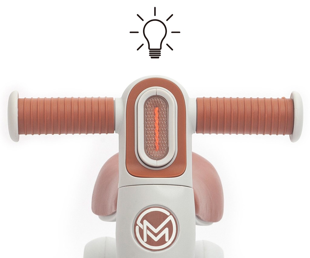 LED světlo zabudované v řídítkách (2× AAA/LR03 – nejsou součástí balení) dodává jízdě hravý efekt a motivuje dítě k pohybu. Odrážedlo je vhodné pro použití doma i venku na rovném povrchu.