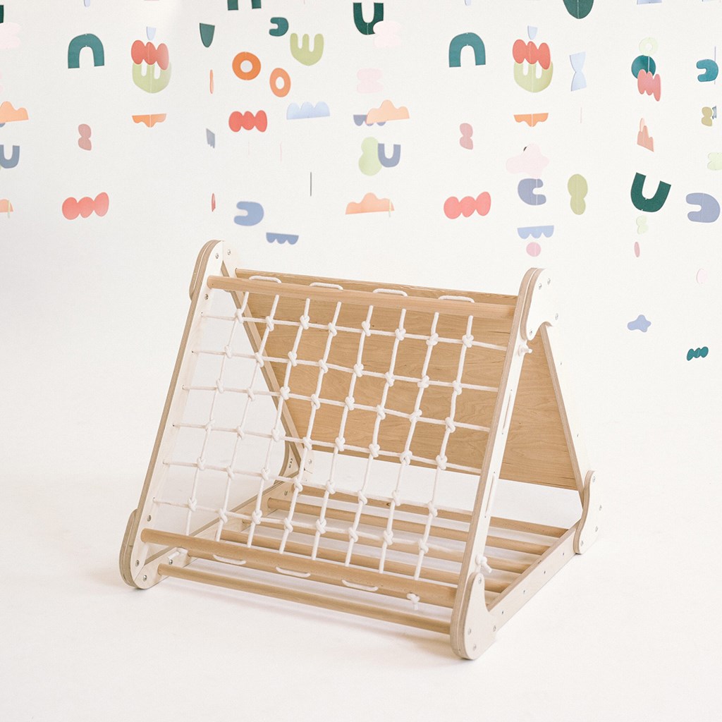 Objevte multifunkční lezecký trojúhelník 3v1 – moderní interpretaci oblíbeného Piklerova žebříku, který spojuje hravost, pohyb a rozvoj dítěte v jednom elegantním designu. Tento model jsme vylepšili o lezeckou stěnu s barevnými chyty a lanovou síť, aby dětem přinesl ještě více možností pro zábavu, pohyb a dobrodružství.