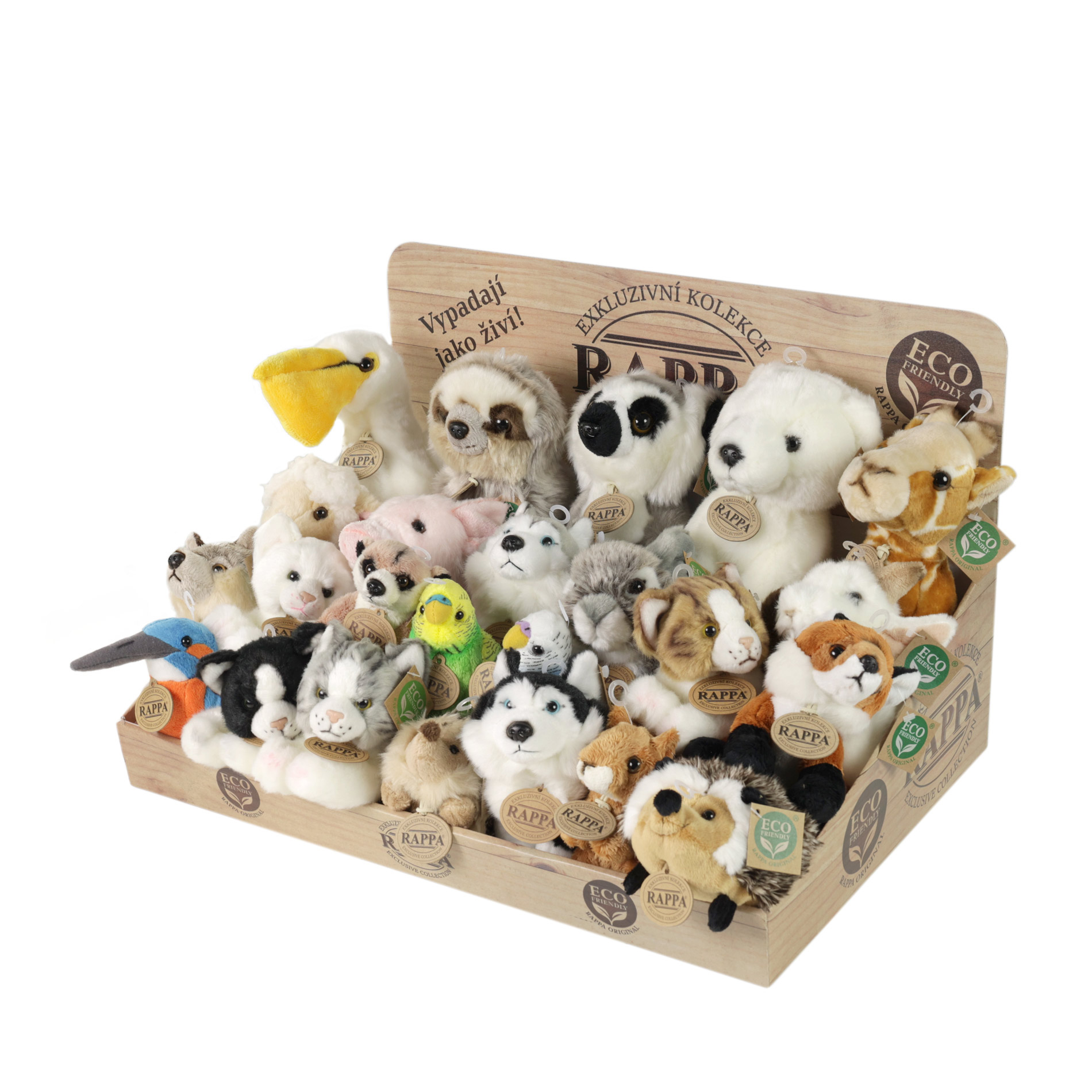 Ucelená sada exkluzivní kolekce plyšáků RAPPA v jednom originálním displeji! V balení najdete tyto artikly: 1x(866836, 192355, 505100, 196001, 848054, 866874, 866881, 211469, 192317, 220058, 220065, 220072), 2x(209749, 505056, ), 4x(450479, 208988).Displej je z vrstveného papíru a jeho rozměr je 490 x 300 x 320 mm. Co to vlastně ECO-FRIENDLY znamená? Výplň plyšové hračky je vyrobena z recyklovaných PET lahví. Tento materiál je zcela bezpečný, na omak nerozeznatelný od standartní výplně a plně atestovaný pro bezpečnost i těch nejmenších. Rozhodli jsme se jít zelenou cestou co nejméně zatěžující životní prostředí- cestou ECO-FRIENDLY.