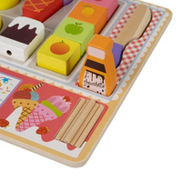 SENZORICKÝ ROZVOJ – textura a hmotnost dřevěných dílků poskytují smyslové podněty a stimulují hmatové vnímání dítěte, podporují rozvoj správného úchopu. Skládání zmrzlinových kornoutů a lepení nanuků na suchý zip pomáhá cvičit prstíky a trénovat trpělivost.