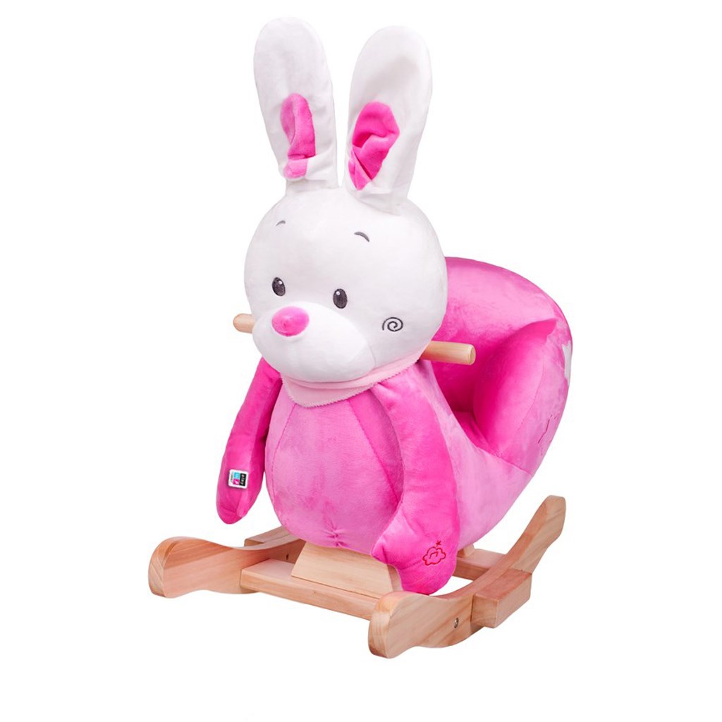Neobyčejně krásný houpací králíček PlayTo s mnoha vychytávkami. Hračka má sedlo, dřevěné rukojeti a dřevěná stupátka na nohy. Houpání je pro malé děti velmi důležité, stimuluje jejich smysly. Králíček po zmáčknutí tlapky hraje melodii. Tlapky jsou měkké a pohyblivé. Dítě si samo dokáže z křesílka dosáhnout na tlapku a spustit ukolébavku. Králíček je vyroben z měkkého plyšového materiálu, díky čemuž si Vaše dítě může dlouho užívat skvělou zábavu. Sedlo je pohodlné, bezpečné a krásně tvarované. Vhodné pro děti od 18 měsíců. Rozměry: Hračka s houpací části: dxvxš: cca 65x60x40 cm. Výška sedadla od země: cca 25 cm. Křesílko: šxhxv: cca 20x17x26 cm. Stupátko na nohy: dxš: cca 13x3 cm.