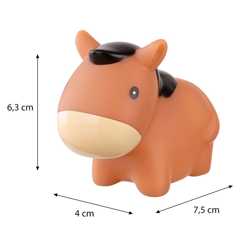 Sada 4 barevných hraček do koupele Farma. Výjimečný a jedinečný design. Výrazné barvy přitahují pozornost batolat.