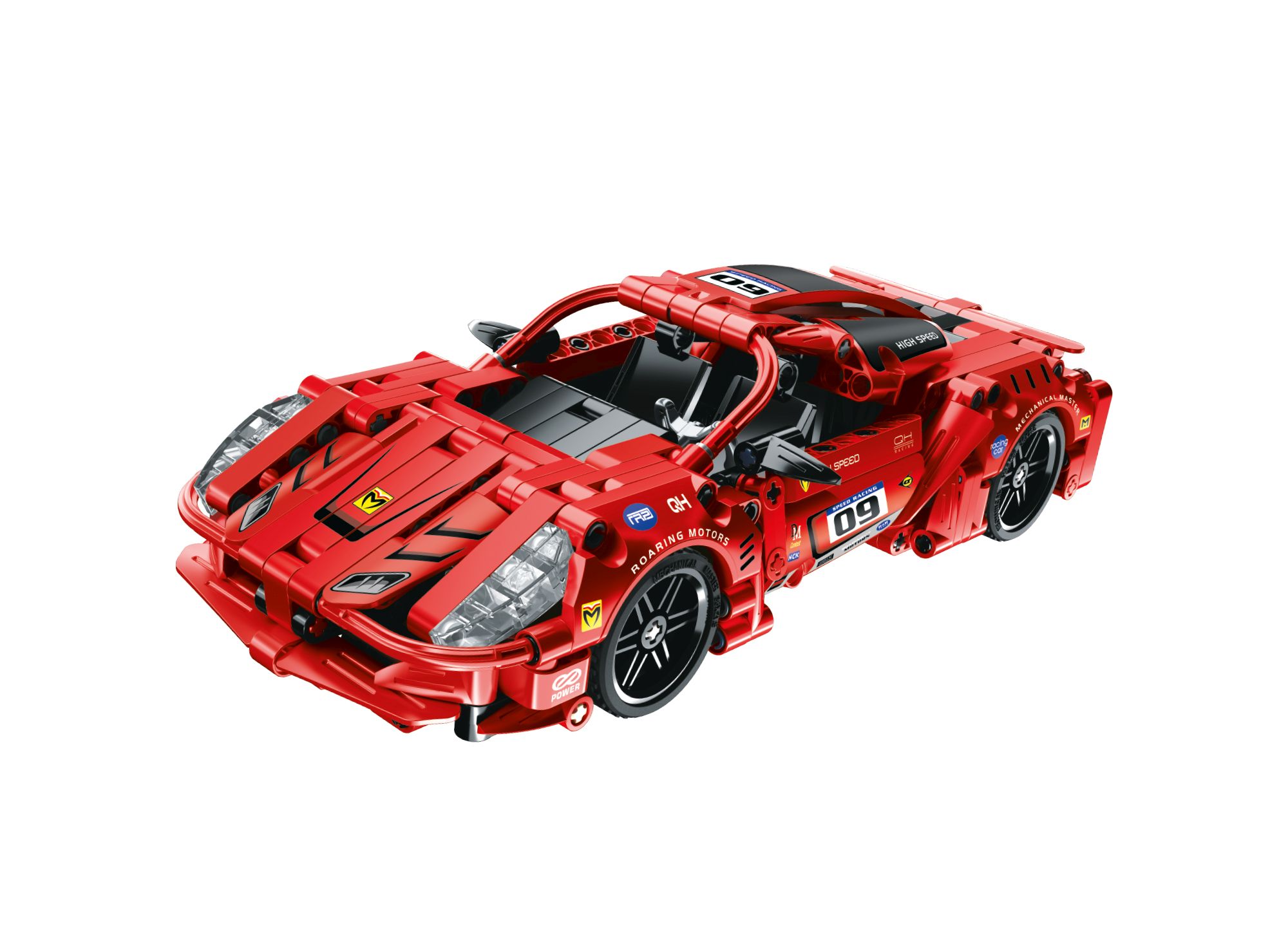 iM.Master Stavebnice závodní auto červené. Rozměry 25x11,4x6,6 cm. 437 dílků. Na zpětné natažení. Otevírací dveře.