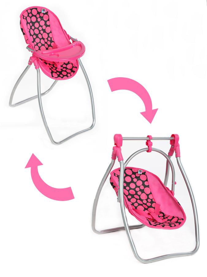 Jídelní židlička a houpačka 2v1 pro panenky Isabella. Krásná a praktická hračka pro všechny malé slečny. Lze ji použít jako houpačku pro panenky, nebo z ní jednoduchým způsobem uděláte jídelní židličku, kterou lze snadno složit a nezabere moc místa. Hračka nabízí mnoho způsobu hraní a zaujme Vaše dítě na dlouhou dobu. Je barevná s veselými vzory. Je vyrobena z kvalitního materiálu, velmi bezpečná a lehká. Je to ideální hračka pro skvělou zábavu.