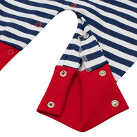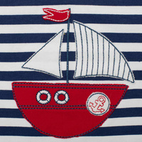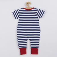 Krásný a stylový letní bavlněný overálek české značky New Baby Marine pro miminka. Overálek je celopotištěný moderními pruhy s krásnou nášivkou lodičky. Nášivka je podlepená látkou proti poškrábání. Zapínání na ramínku a mezi nožičkama usnadňuje oblékání a přebalování miminka. Pro miminka je overal důležitým kouskem oblečení a při jakémkoliv pohybu jsou zádička miminka stále přikrytá. Pro New Baby je velmi důležitá spokojenost zákaznika a právě proto vám nabízíme naši kvalitní letní kolekci Marine. Složení: 100% bavlna.