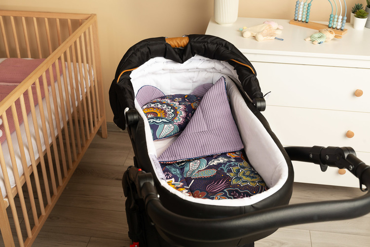 Sada do kočárku Waffle se skládá z polštáře (36x28 cm) a deky (56x76 cm). Díky této velikosti je sada ideální pro použití v kočárku, postýlce nebo jako měkká podložka pro miminko. Uvnitř se nachází antialergická výplň, která poskytuje dostatečnou izolaci proti chladu. Samotný polštář lze použít jako plyšovou hračku. Souprava je vyrobena ze 100% bavlny - na jedné straně je potisk a na druhé měkká bavlna s vaflovou strukturou, která dodává celé soupravě jedinečný vzhled
